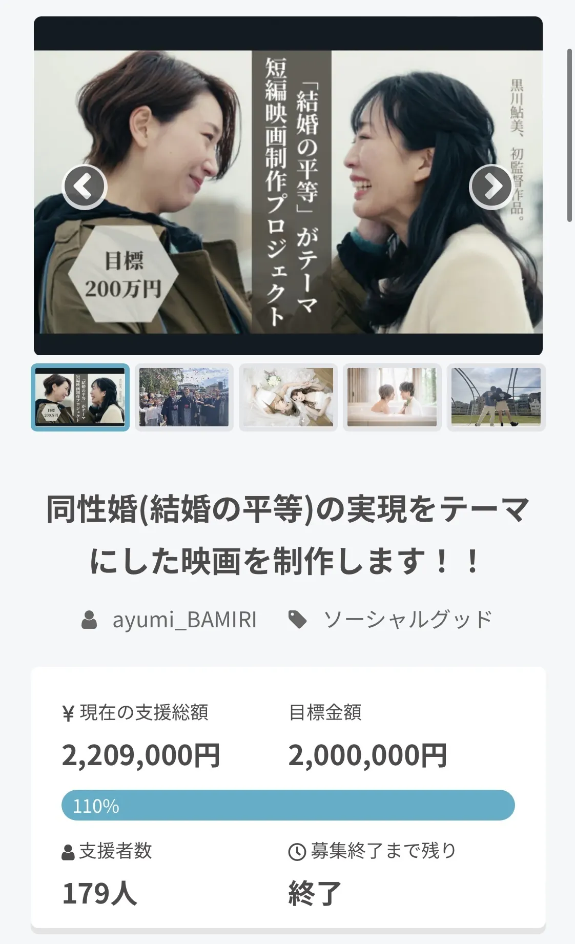 お陰様で179人の方々からご支援頂き、達成率110%で終わりました!