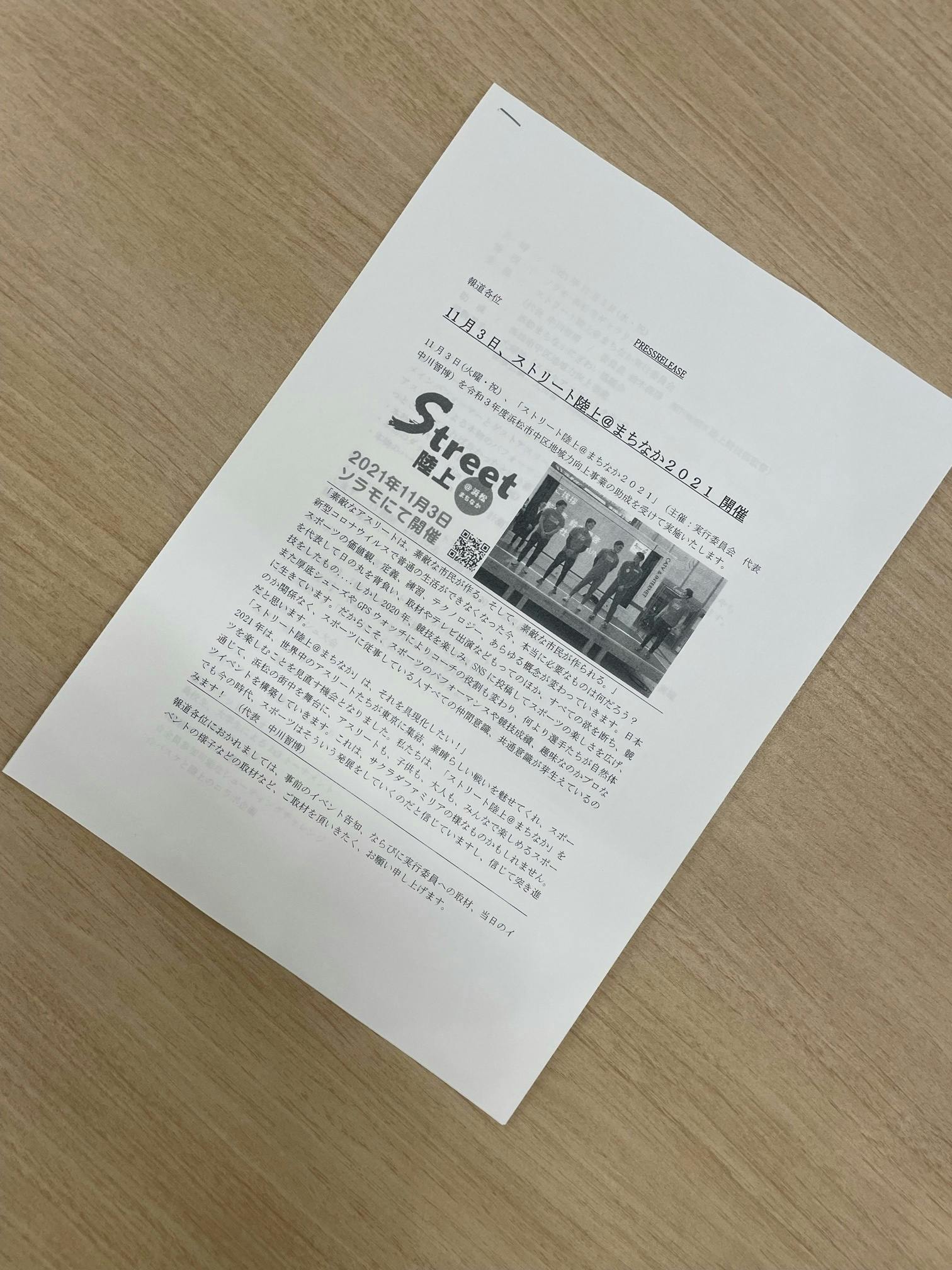 中川です。イベント実施に向けて、プレスリリースを提出してきました。今日は外回りなので、PRも兼ねて「ストリート陸上@まちなか Tシャツ」を着てGO!!!!!イベントのPRに余念がありません~☆