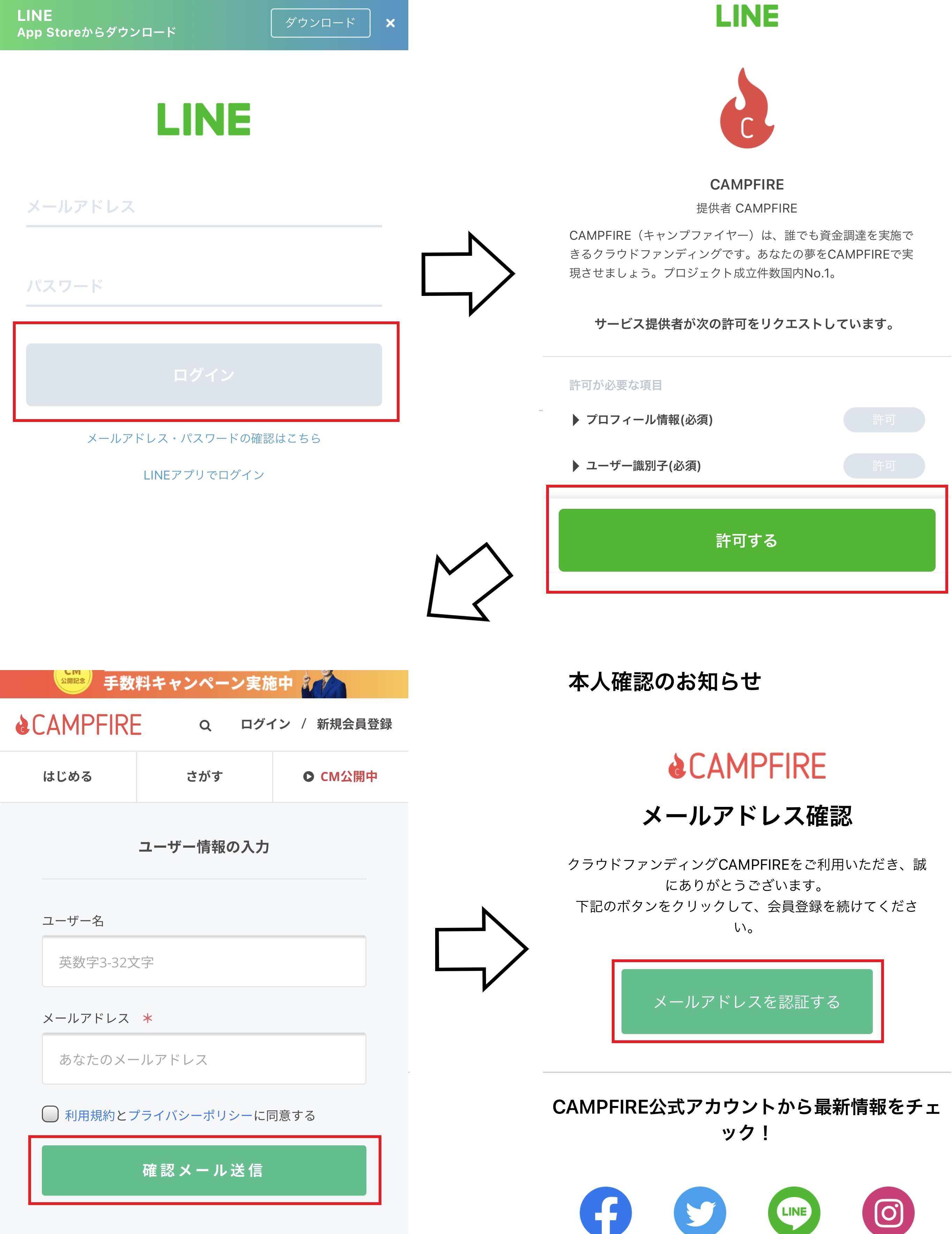 ※Facebookアカウントで会員登録する場合も同様の手順です