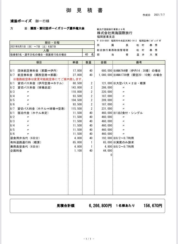 往復の航空運賃、移動用バス、宿泊費に加え、今回の大会期間が8月1日~8日と夏のレジャーピーク期にあたることから、多額な渡航費を必要とします。