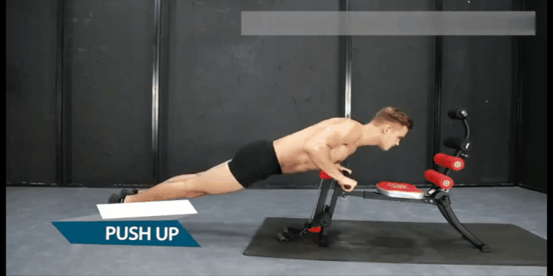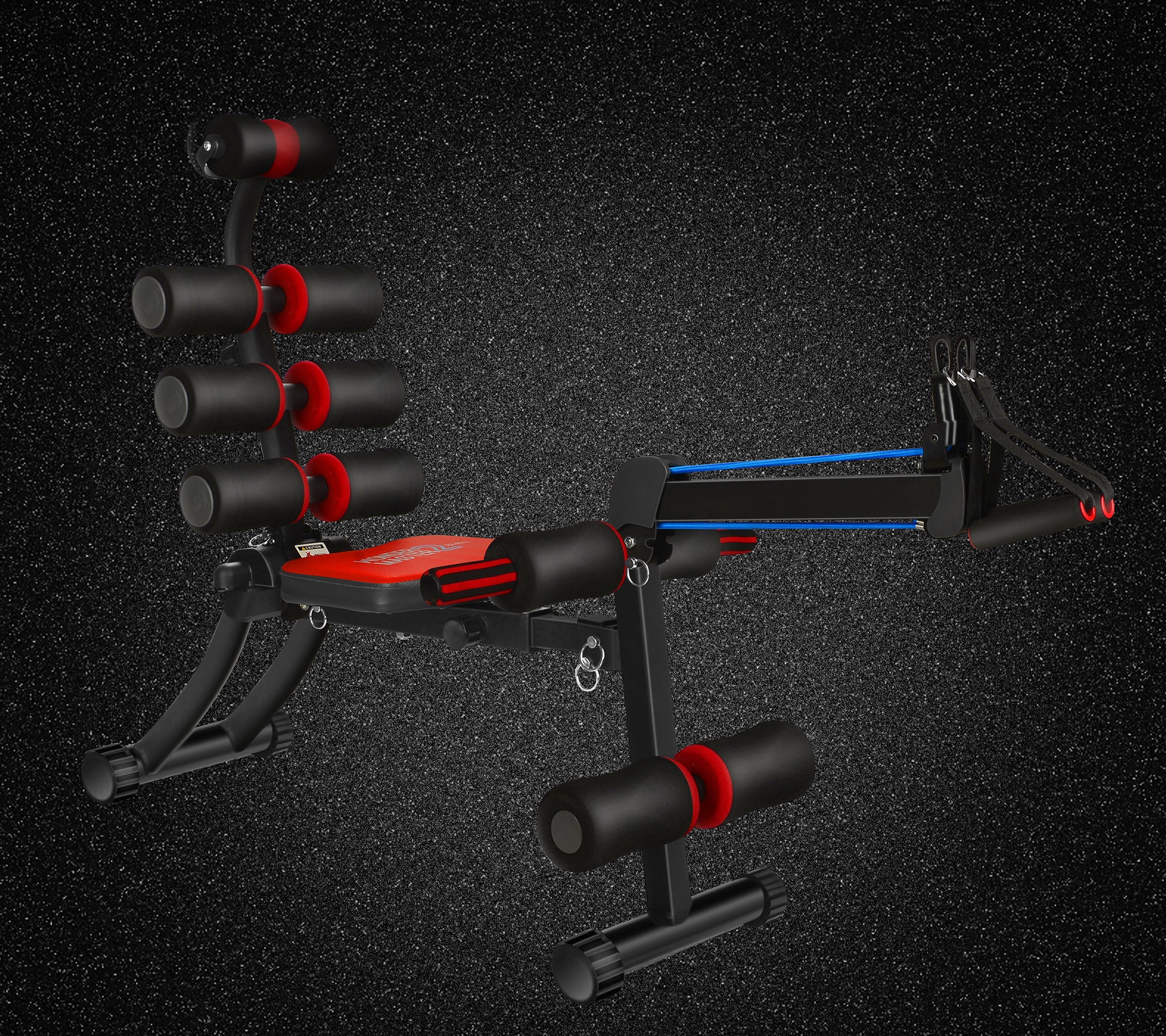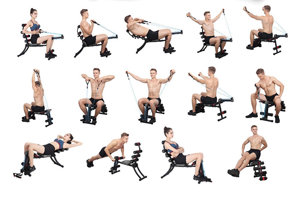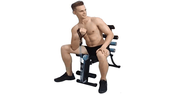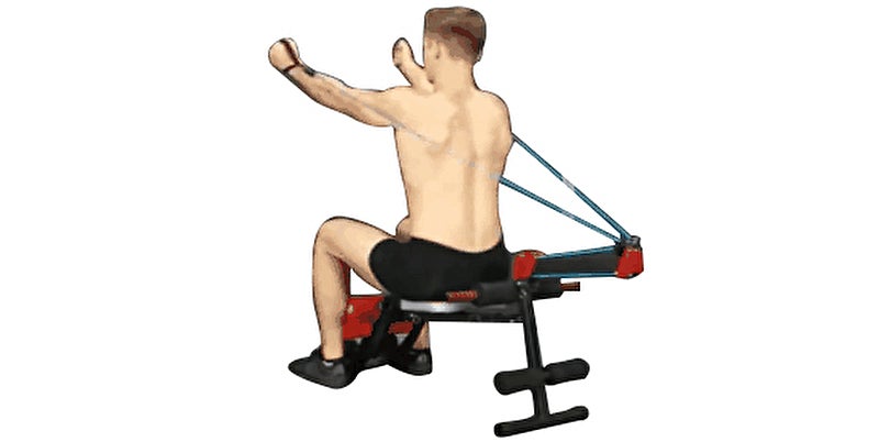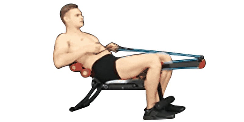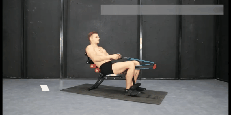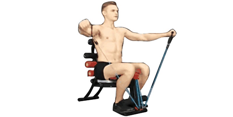 これまでベンチ型のトレーニングマシンは腹筋がトレーニングの中心でしたが、ローイングバンドが付いているので上半身の筋力トレーニングもすることができます。