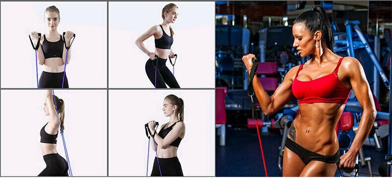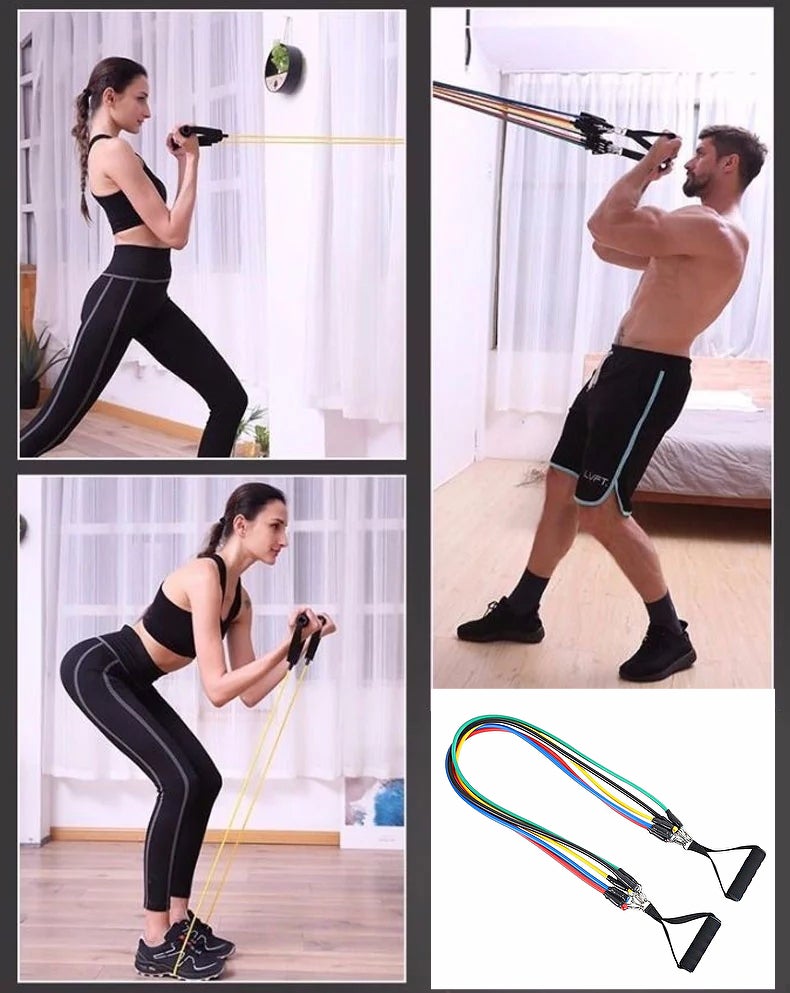 レジスタンスチューブセットは持ち運びができて、いつでもどこでも筋力トレーニングをすることができます。