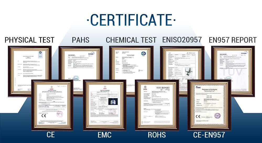 特にヨーロッパでは、CE:EU加盟国の基準適合やEN957:欧州トレーニング機器安全基準の証明書を取得しています。
