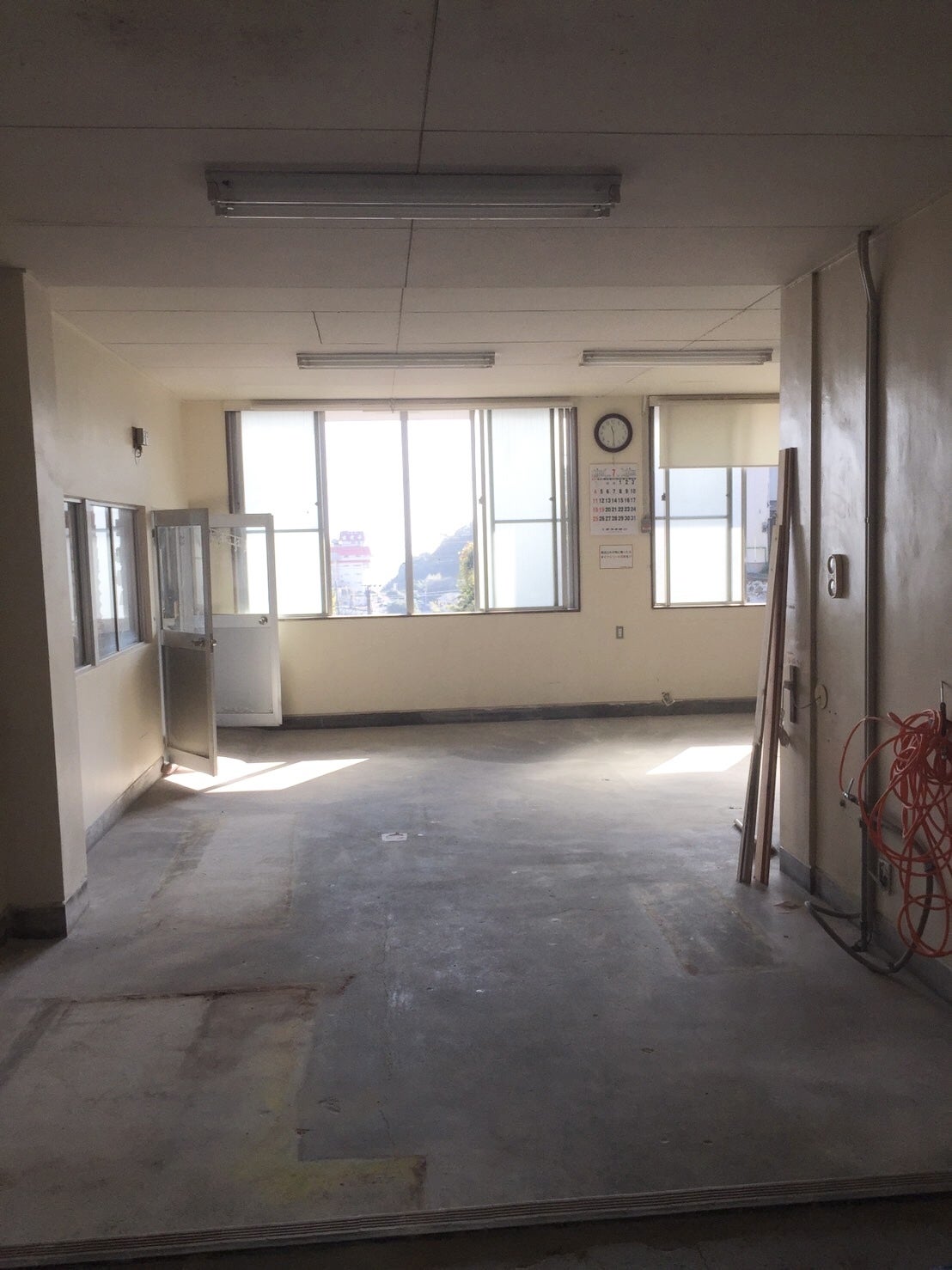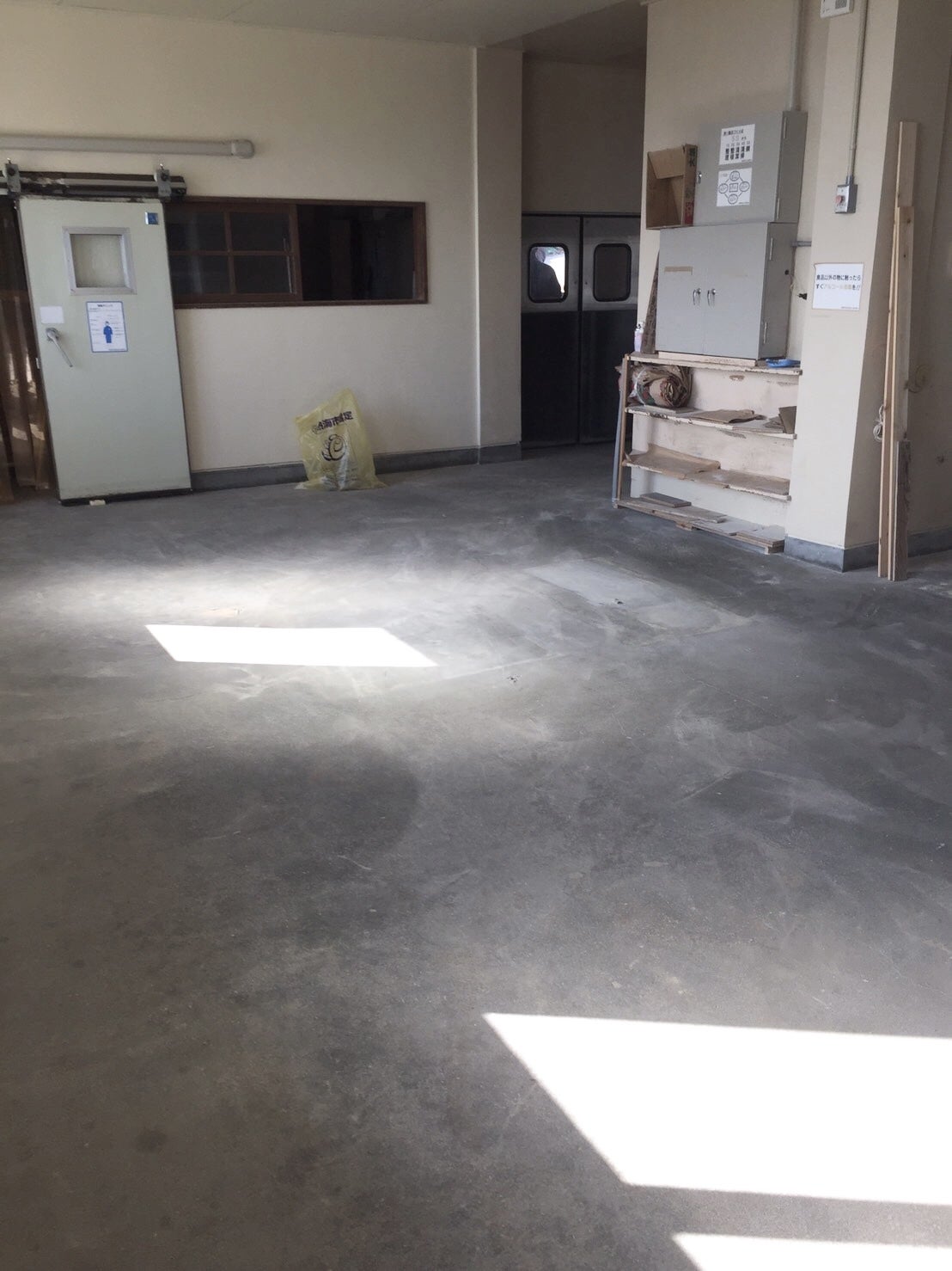 【↑機械が運び出された後の工場内】