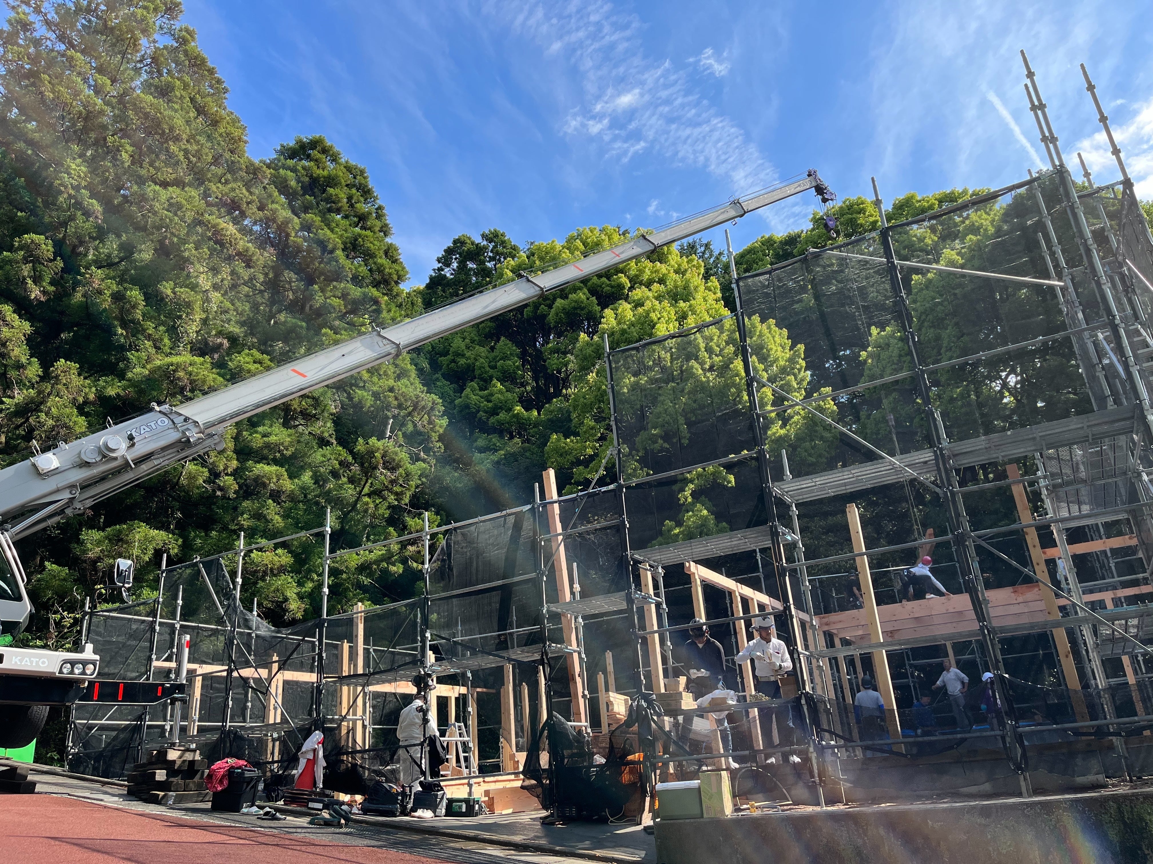 昨年の熱海土石流災害から一年後となる7月3日のオープンを目標としていましたが、地盤から岩が出てくるなど問題もあり、予定より少し遅れていますが、7月中旬のオープンを目標に、日々沢山の方にご協力いただきながら、進めている次第です。