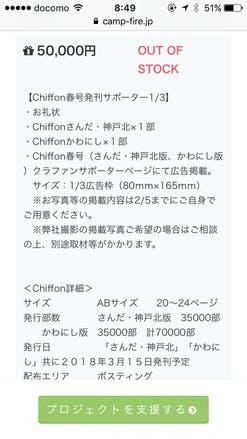 【Chiffon春号発刊サポーター1/3】のリターンもなくなりました。