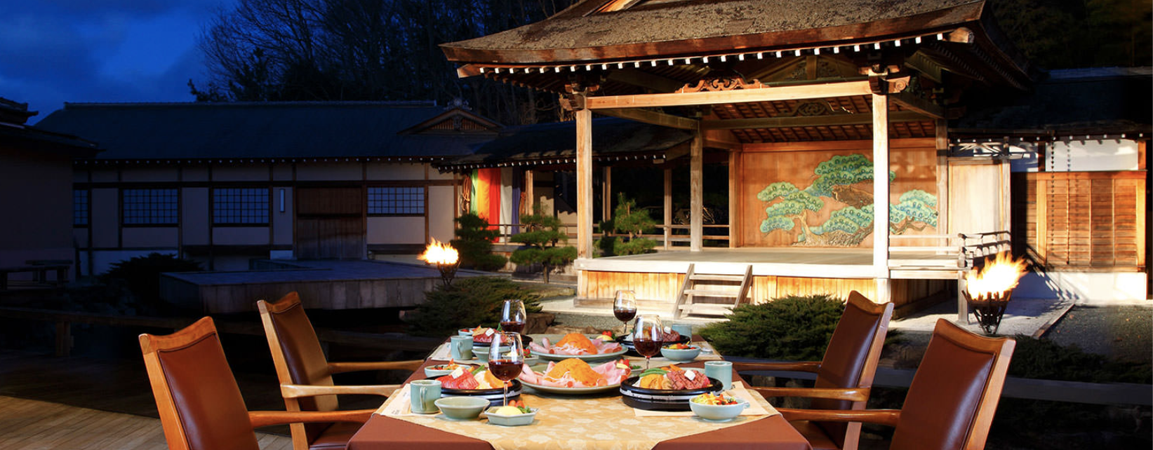 フラワータウンで最も有名、といっても過言ではないこのお店、きっと皆さんご存知だと思います。世界ではじめて能舞台が併設されたステーキレストランはこちらです。