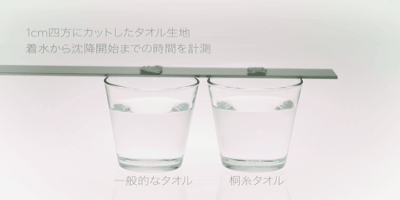 桐糸タオルと日本製タオルとの吸水テストで約4倍もの吸水スピードに違いが出ました