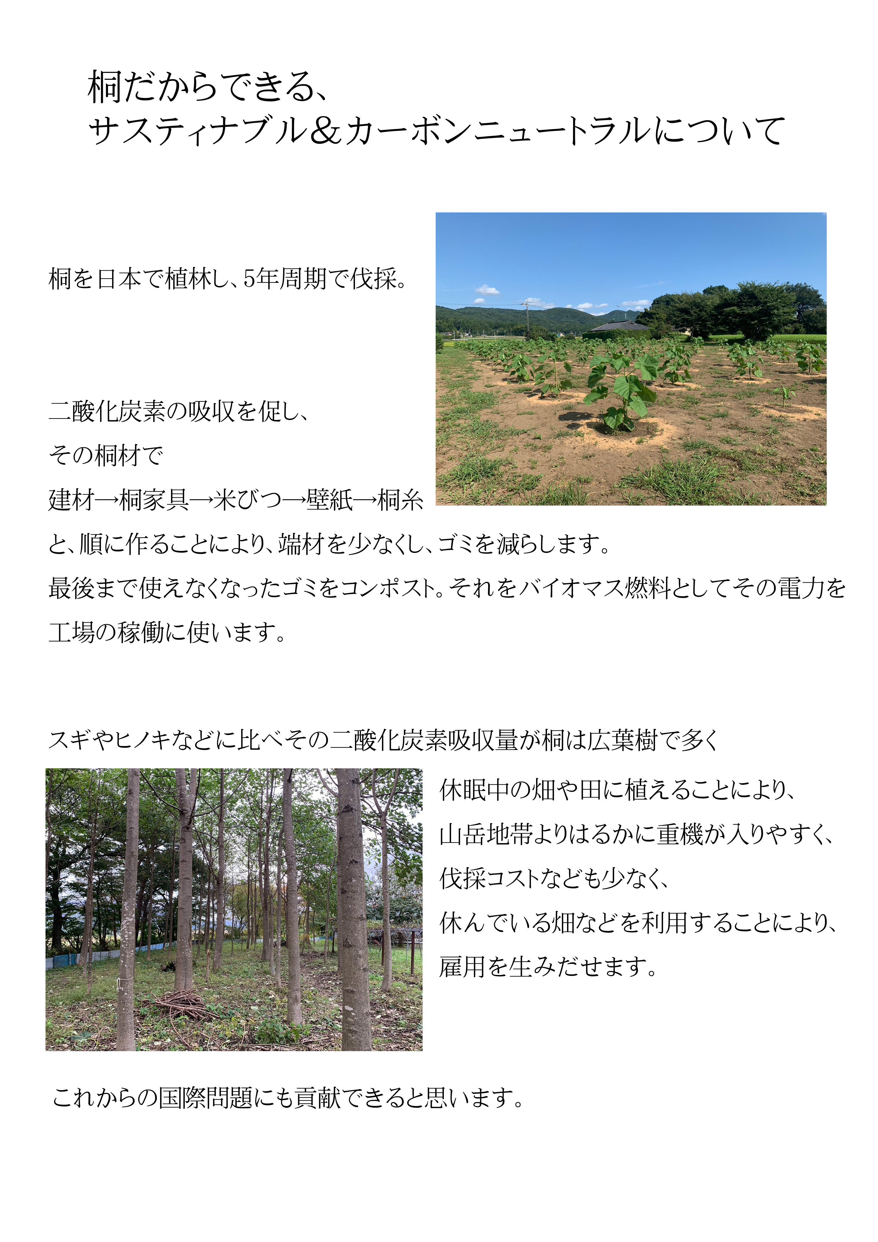 桐の壁紙や桐糸へ製品開発し今回の桐糸バスタオルのプロジェクトを始めることが