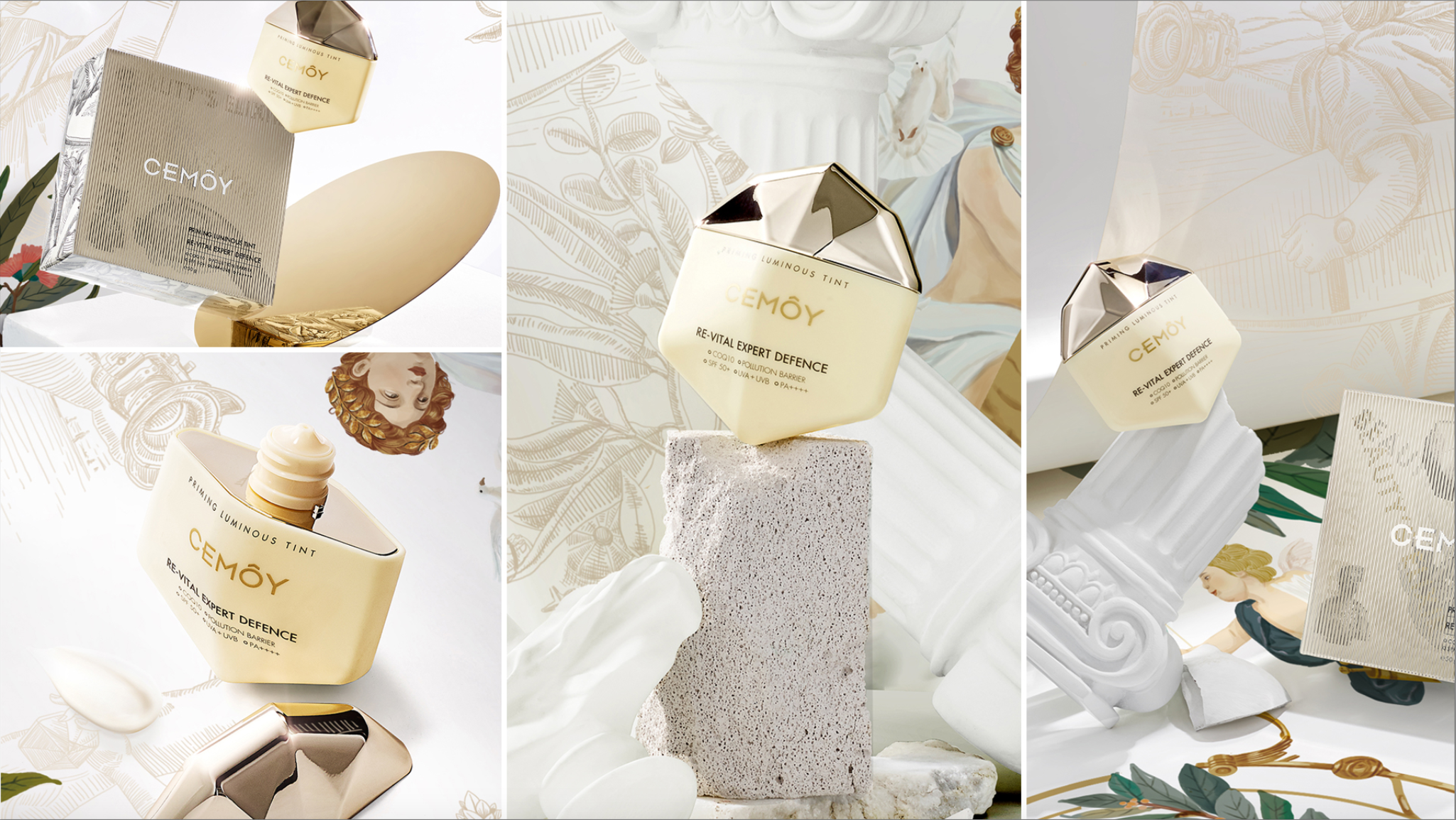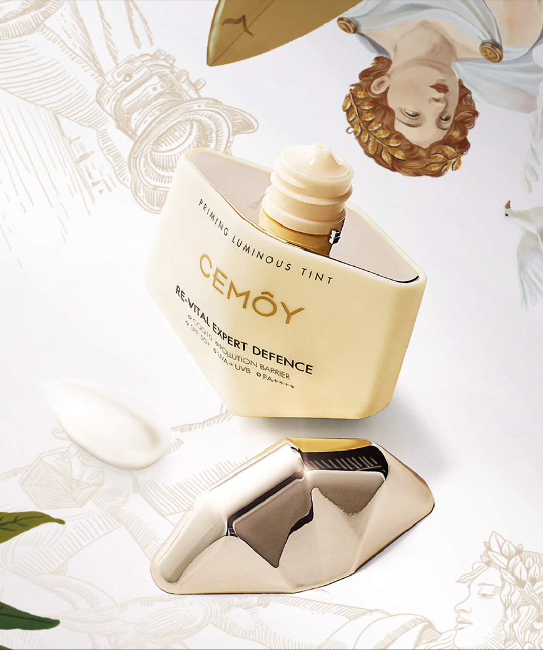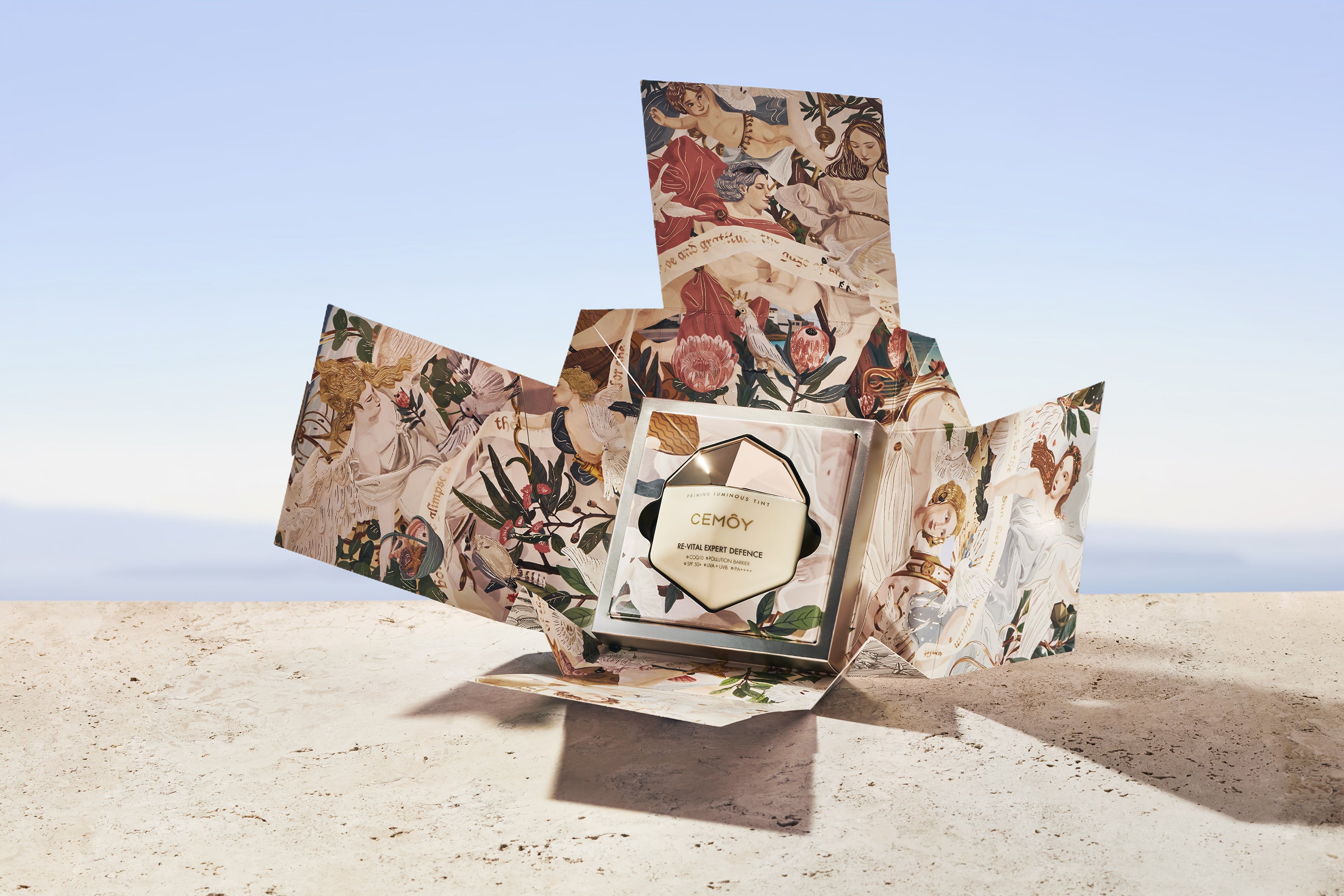 この愛の神話にインスパイアーされ、CEMOYはアポローンのショールと同じ効果を持つ日焼け止めー「エキスパートデフェンスSPF50+,PA++++」を開発しました。 日焼け止めのパッケージに描かれているイラストはこの日焼け止めでお手入れをした神様たちがオーストラリアのシドニーにある有名なビーチで太陽を浴びて楽しんでいる様子です。 -