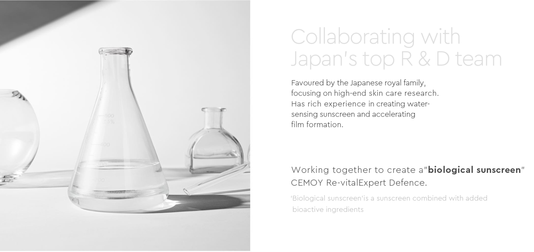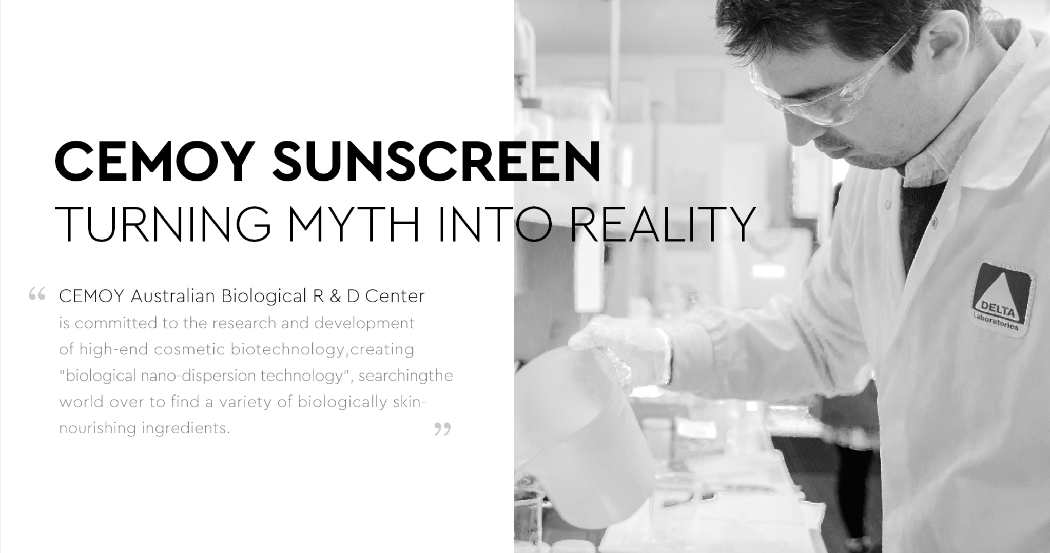- オーストラリアにあるCemoy R&Dセンターは、強い紫外線から肌を守る日焼け止めを作るために、世界中を探して、より優れたスキンケア成分を選び、日焼け止め<エキスパートディフェンス>の開発に成功しました。