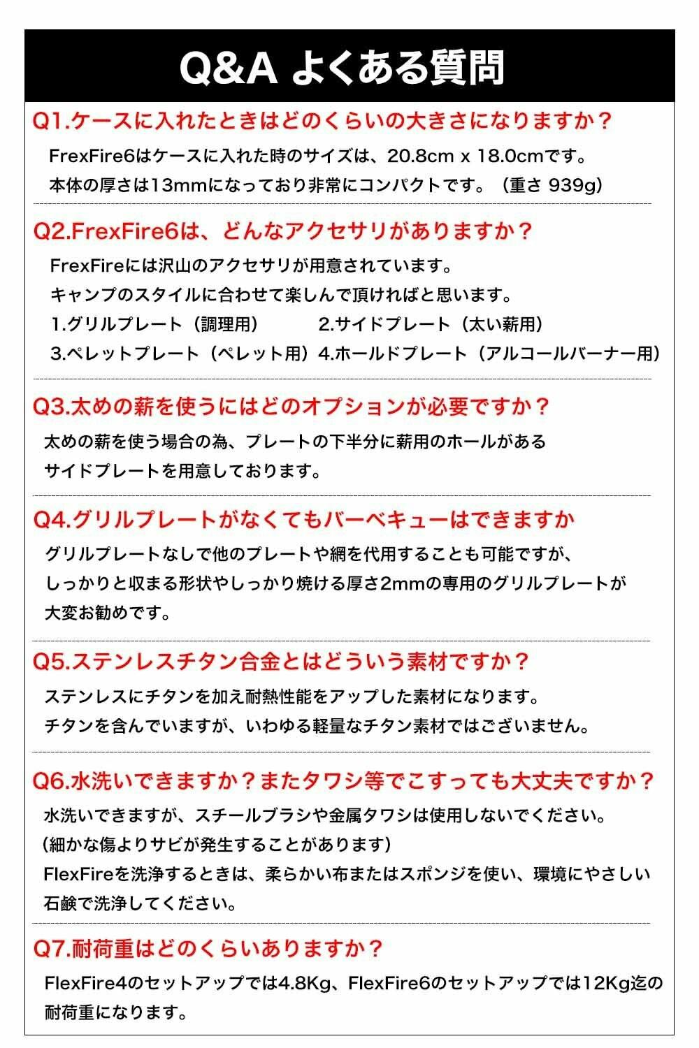 FlexFire Premiumは、FlexFire4と6を包含していますので、お使いになるシチュエーションに合わせて必要なパーツを携帯するのがお勧めです。グリルプレートも標準装備で、穴あきのフロントプレートに加えエアフローを抑えたいときに使うホールのないフロントプレートも付属しています。それぞれパーツを集めてお求めになるよりかなりお安くなっています。