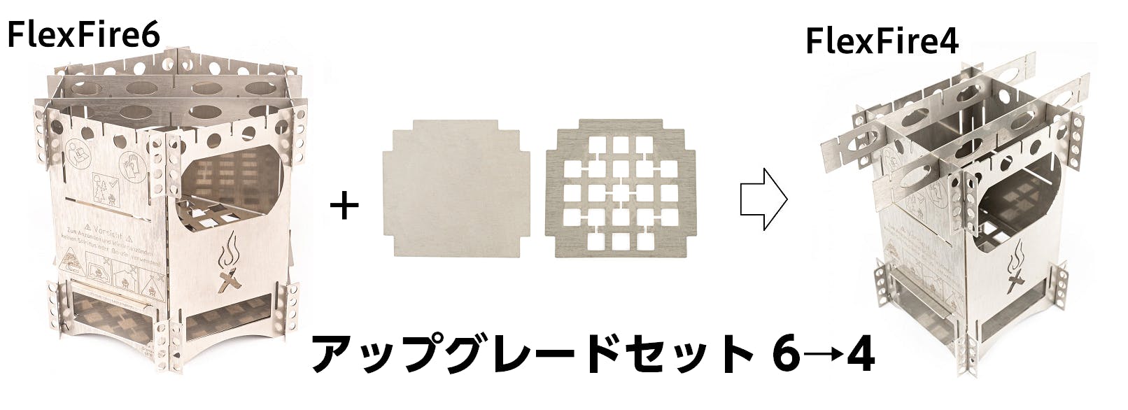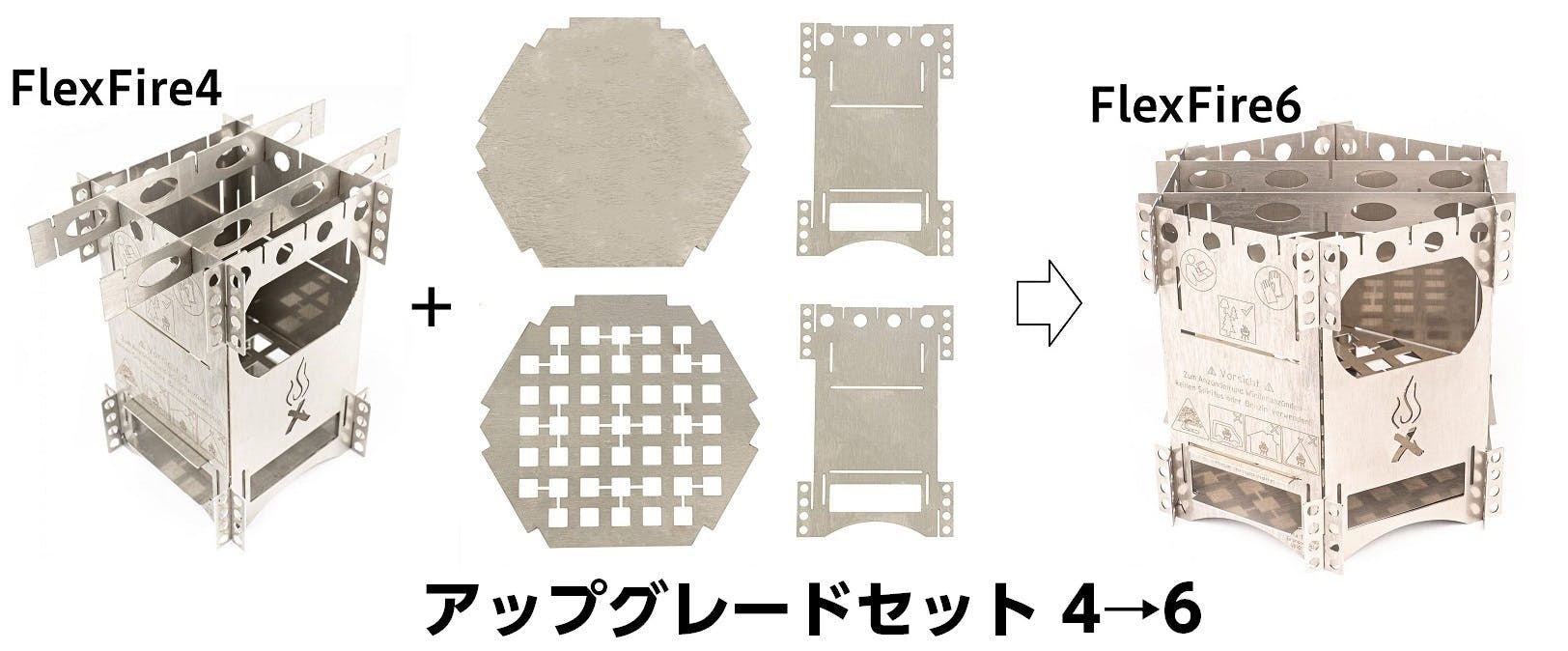 FlexFire4をお持ちの場合、アップグレードセットによりFlexFire4のパーツと合わせて、FlexFire6を組み立てることができます。また、逆にFlexFire6をお持ちの場合、FlexFier4を組み立てるアップグレードセットもございます。これらのアップグレードセットはオプションにて準備しております。