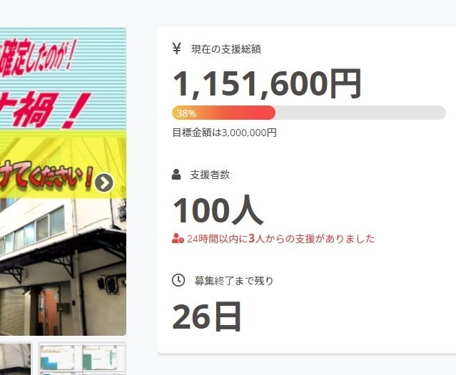 皆様の応援のおかげで、支援人数100人、支援金100万円を突破致しました!!本当に有難うございます。しかし本当の闘いはこれからです!引き続き応援、拡散等のご協力をお願い致しますっ!