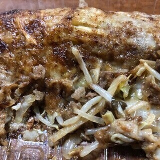 常連さんやご近所さんから愛される毎日食べたい定番の味を1枚140円という値段で提供 小麦粉を薄く伸ばした生地の中には、千切りキャベツ、こだわり食感の細もやし、少し細麺の中華そばと牛すじ肉を甘辛く煮詰めたそぼろ状のお肉を秘伝のニンニク醤油で食べる独特のお好み焼き。ご飯のおかずからお酒のおつまみやおやつと毎日食べても飽きないソールフードを提供しています。