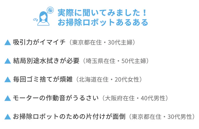 お掃除ロボットを起動する前に、先に部屋の片付けをしなければいけないこともしばしば。