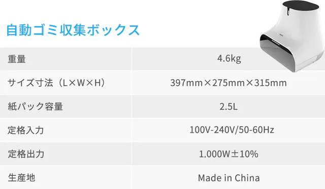ダストボックスは2.5Lの大容量なので、ゴミ捨ては1〜2ヶ月に1回紙パックをつまんでポイするだけ! 仕事や子育てで頑張りすぎるあなたへの心強い味方!