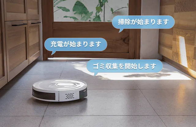 neabot Q11は日本語を含め計8カ国の音声案内をサポートしています。お料理や浴室掃除をしている間、常に掃除機の状態を把握でき、安心です。