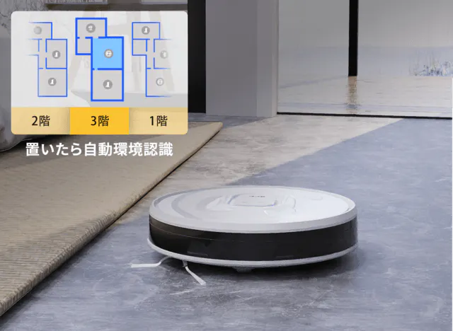 最大3枚までの清掃マップを保存することが可能なので、三階建てのお家も階ごとにマッピングを作成することができます。また、自動で清掃環境を認識できるため、毎回マップを選択し直す必要もありません。
