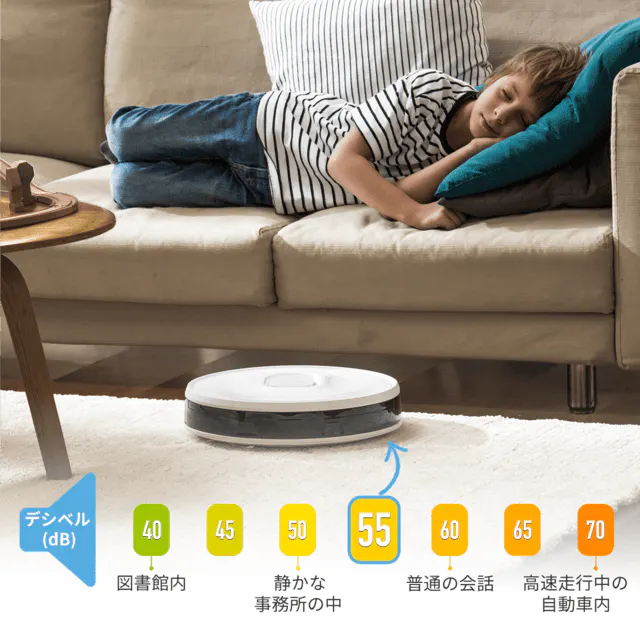 静音モードを搭載したneabot Q11の騒音値は55dB以下で、静かな事務所に相当する非常に低騒音です。仕事や映画鑑賞の間でも静かに掃除してくれるので、ふと気づいたらキレイに掃除された部屋にびっくりするかもしれません。