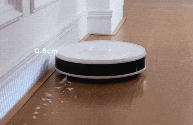 壁との距離を0.8cmに維持し、掃除しづらい壁際や部屋の角までぶつからず、しっかりと掃除してくれます。文字通り部屋の隅々まできれいに!