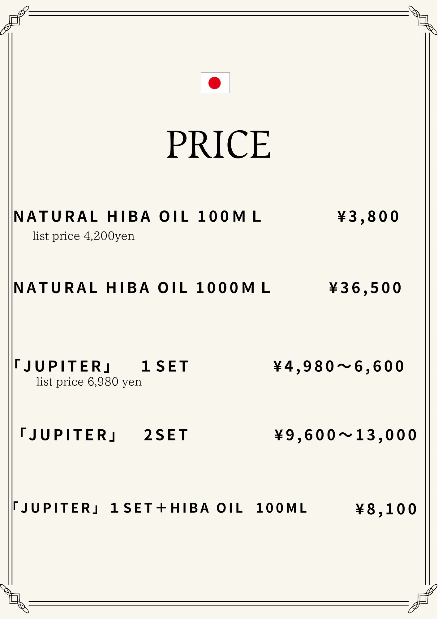 ジュピターは、日本三大美林(秋田杉・檜・青森ひば)の一つである、青森ひばを使用しています。