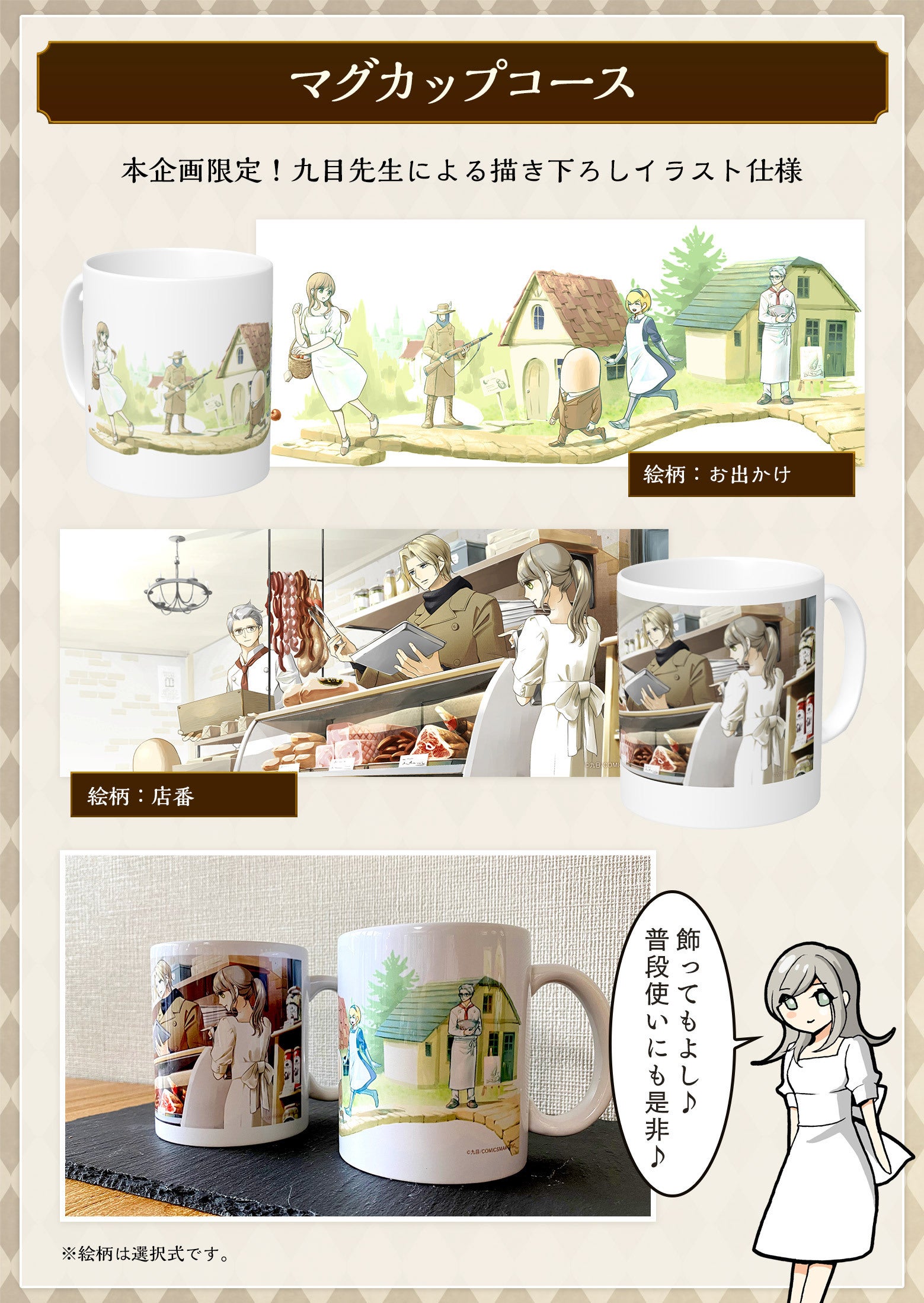 第1話から最終話(74話)まで約1,000ページ相当をコミック文庫サイズ(A6)・ペーパーバック形式(カバー無し)・全3巻構成でご用意いたします。表紙はすべて九目先生描き下ろしにてご用意させていただきます。さらに、本企画の為に特別に描き下ろしていただいたエクストラエピソードを収めた描き下ろしマンガをご用意しております。内容としては、後日談 近況報告編が2話分とキャラクター紹介やおまけマンガを合計48ページにて収録しています。