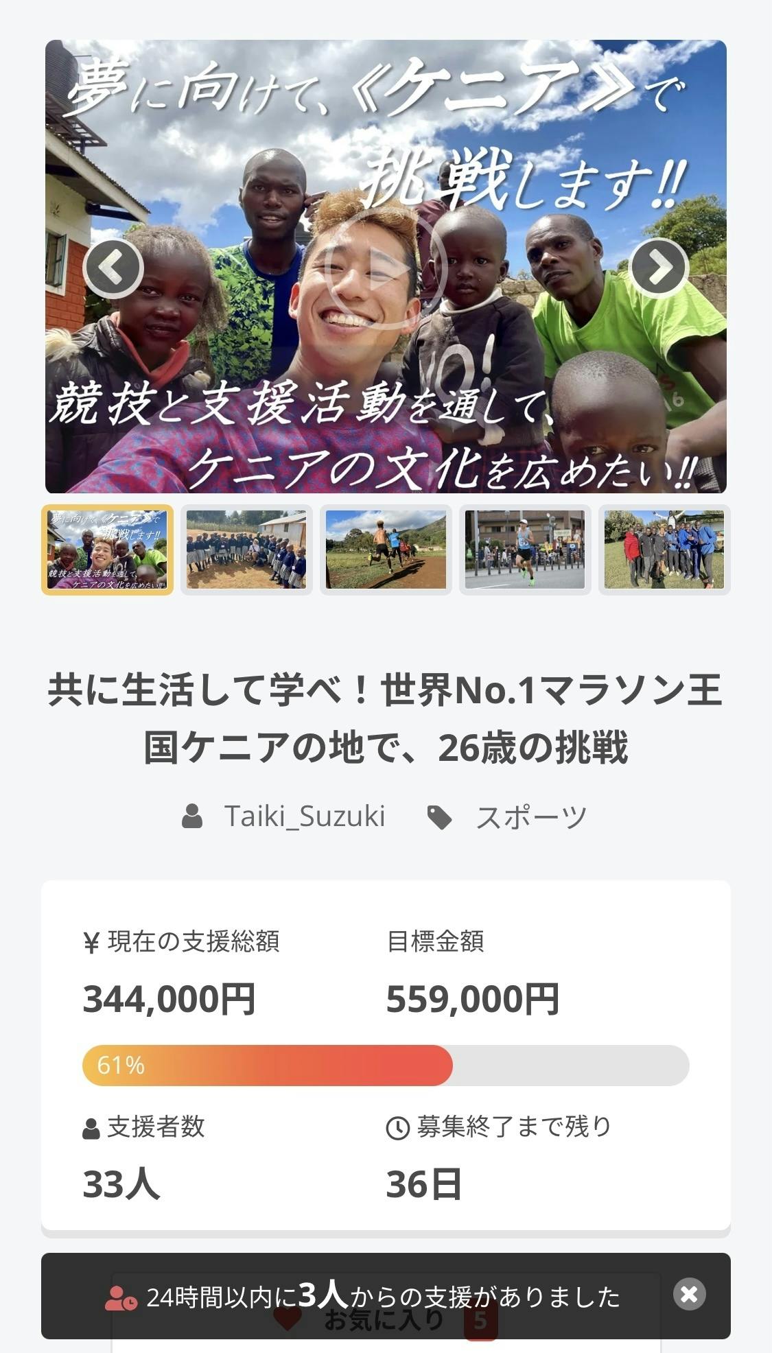 私自身、日々皆様からの応援を頂き、それがケニアでのトレーニングの活力になっている事を実感しています。