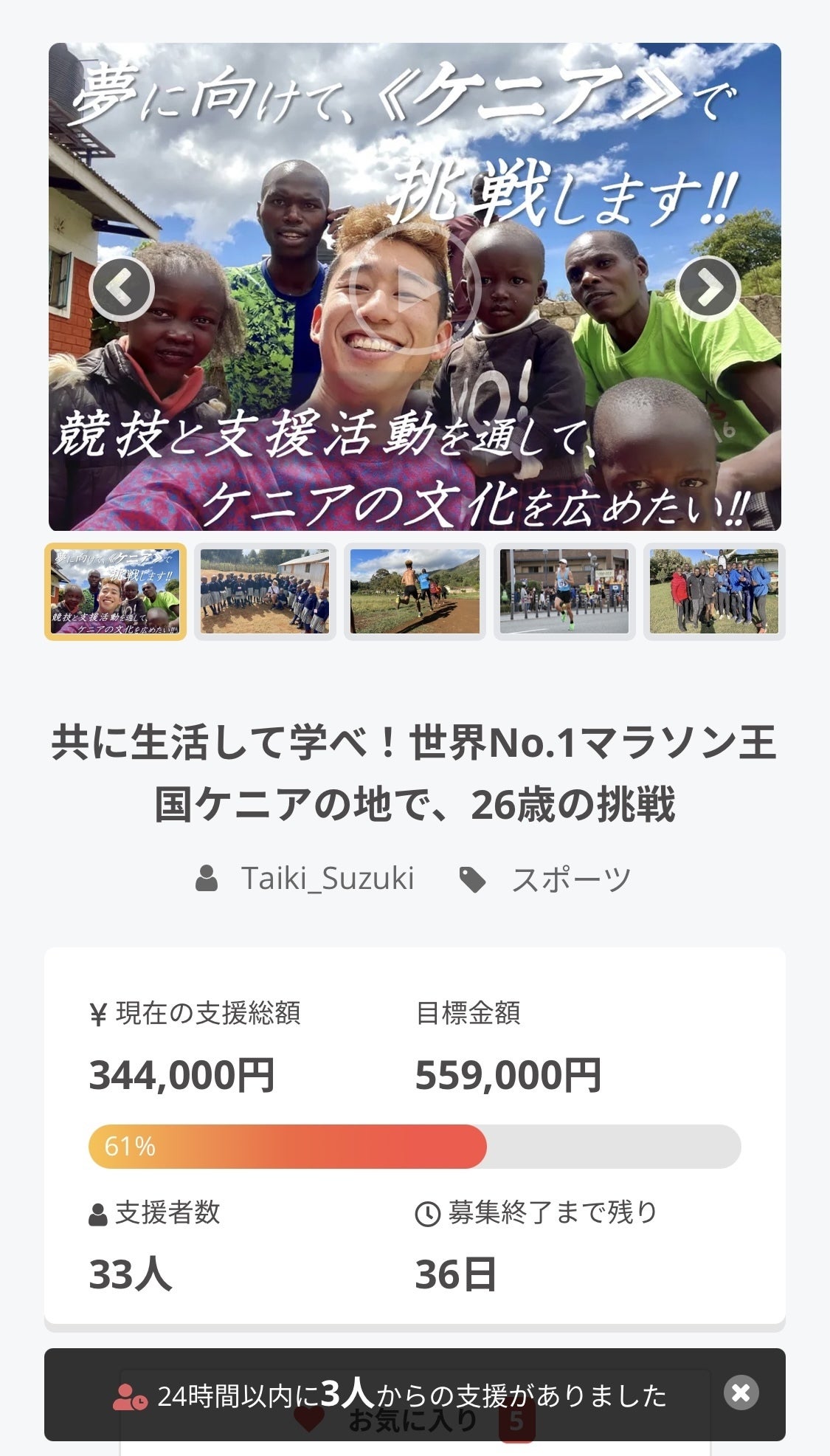 滞在1ヶ月目、体調チェックで血液検査へ行ってきました!皆さま、お世話になっております!今回は、現地の病院で血液検査をして、ヘモグロビン値を計測しました。この数値は、主に高地トレーニングを行うと高くなり、高地順化しているかどうかの指標の一つになります。結果は、、『16.7』 でした。アスリートの正常値が、男性が13.5〜17.0と言われています。また、実業団時代が高くて14辺りの数値だったので、かなり個人的には高い数値が出て、自分でもびっくりしました。前回は6ヶ月・今回は現段階で1ヶ月と、標高2400mのケニアに移住し、トレーニングを行ってきましたが、今回の検査で数値として体の変化を知れたことは、やってきたことが間違っていない事への自信になりました。今後は、レースまで2ヶ月半のケニア滞在の予定となっております。今後も定期的に検査したいと思います。皆さま、引き続きどうぞよろしくお願いいたします!