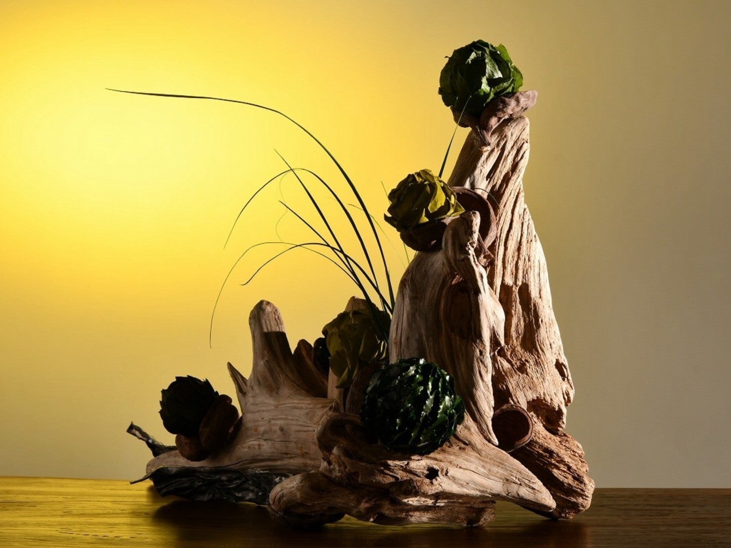元々は葉や花をつけて生きていた流木。