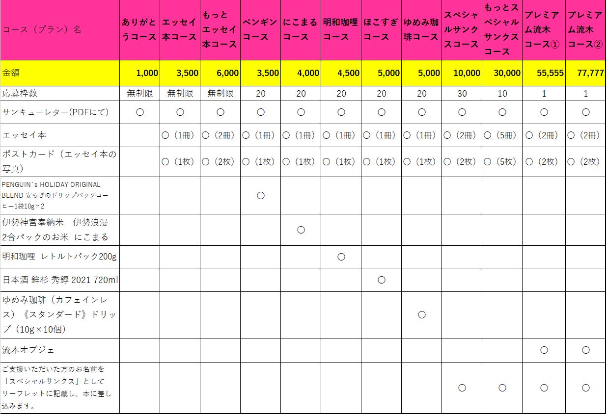 ※好評につき、ペンギンコースがソールドアウトしました!新しいリターンとして「ペンギンコースプラス」を追加しております。