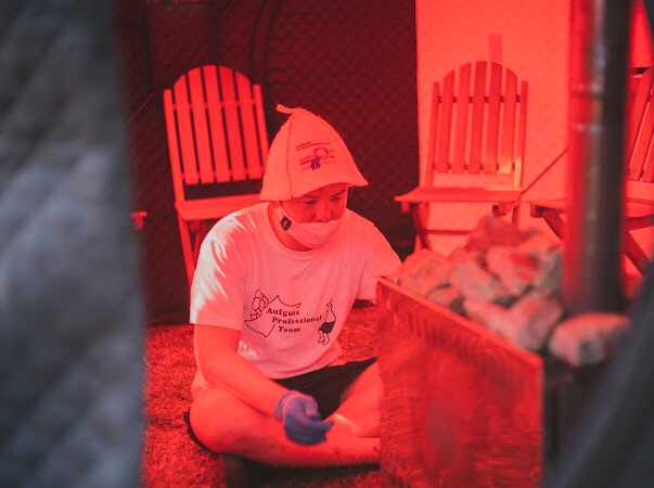 アウフグースフェスのVIP席となっております。通常のアウフグースフェスにプラスして自分たちだけのテントサウナをお楽しみできます。