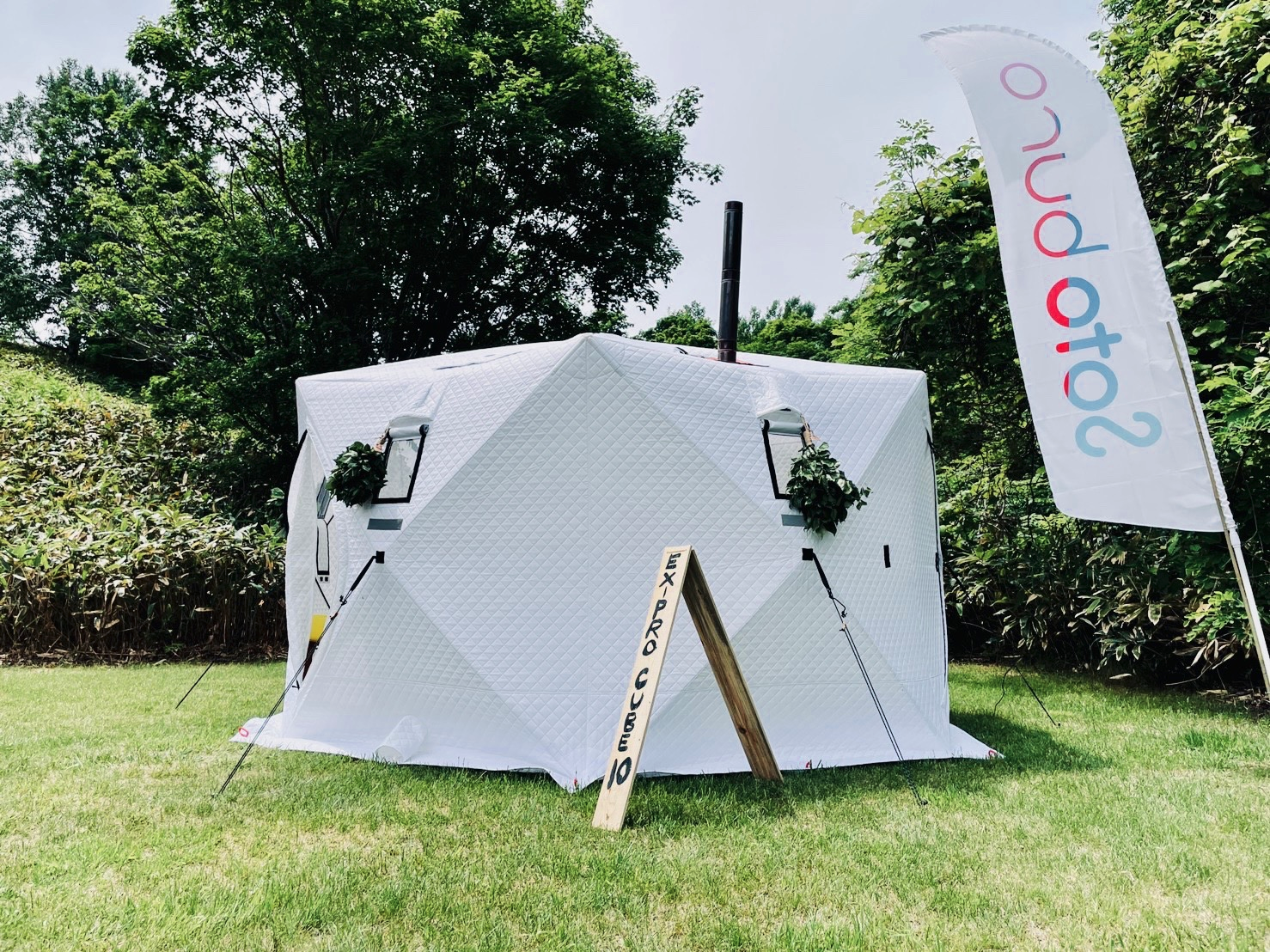 ココまで大きなテントサウナがなかったので、特注いたしました。