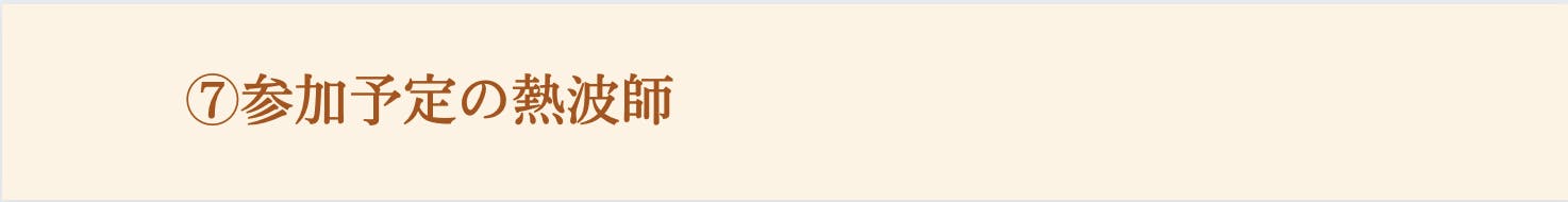 ※ 新型コロナウイルス感染症拡大に伴い、熱波師の参加人数に変更がある場合がございます。