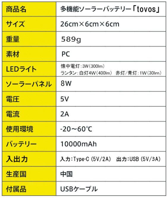 不便です。その点【tovos】は巻き取り式の大型ソーラーパネルでしっかり