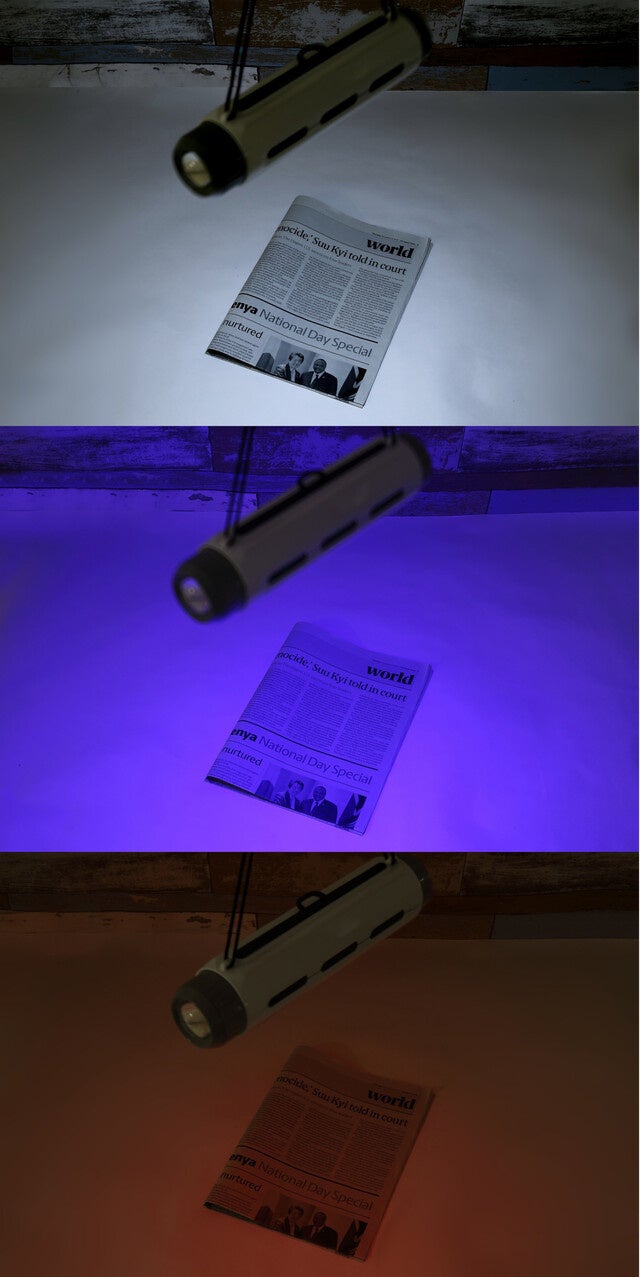 白/赤/青色灯を使い分けできます。ランタンの白色灯は400ルーメン。
