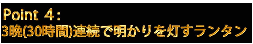 ランタンなら連続30時間、懐中電灯なら48時間連続点灯可能なので、1回の