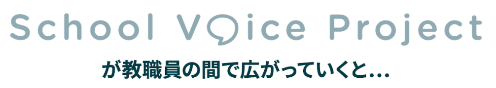 School Voice Projectは、声が届き、実際に物事が動いていくという経験を、たとえ小さなことからでも、現場の教職員の方とともに積み重ねていくことで、教職員の方が「変えていける実感」「声が届いている感覚」を持てるようにすること。まずは、そこを目指していきます。