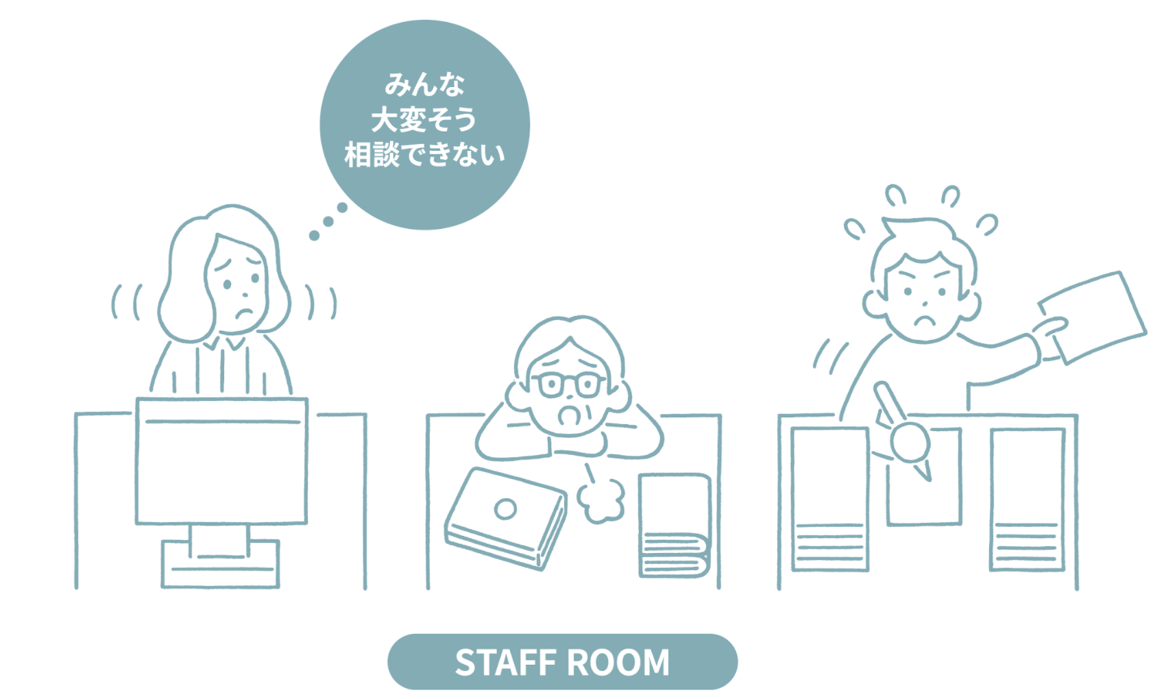 学習内容がわからず授業についていけない子、学校のルールに疑問を感じながら過ごす子、授業中も机に突っ伏して寝ている子・・・。多様な子どもが過ごす学校で、必死に働きながら、困り感や疲労感を抱えている先生は、決して少なくありません。