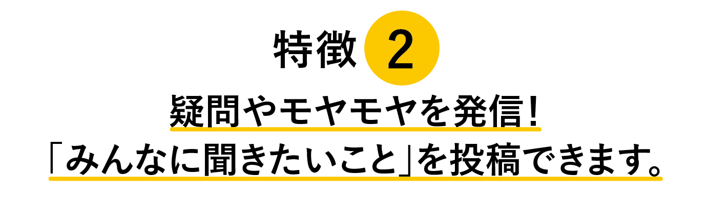 ・ユーザーが書き込める「みんなに聞きたいこと」というコーナーがあります。