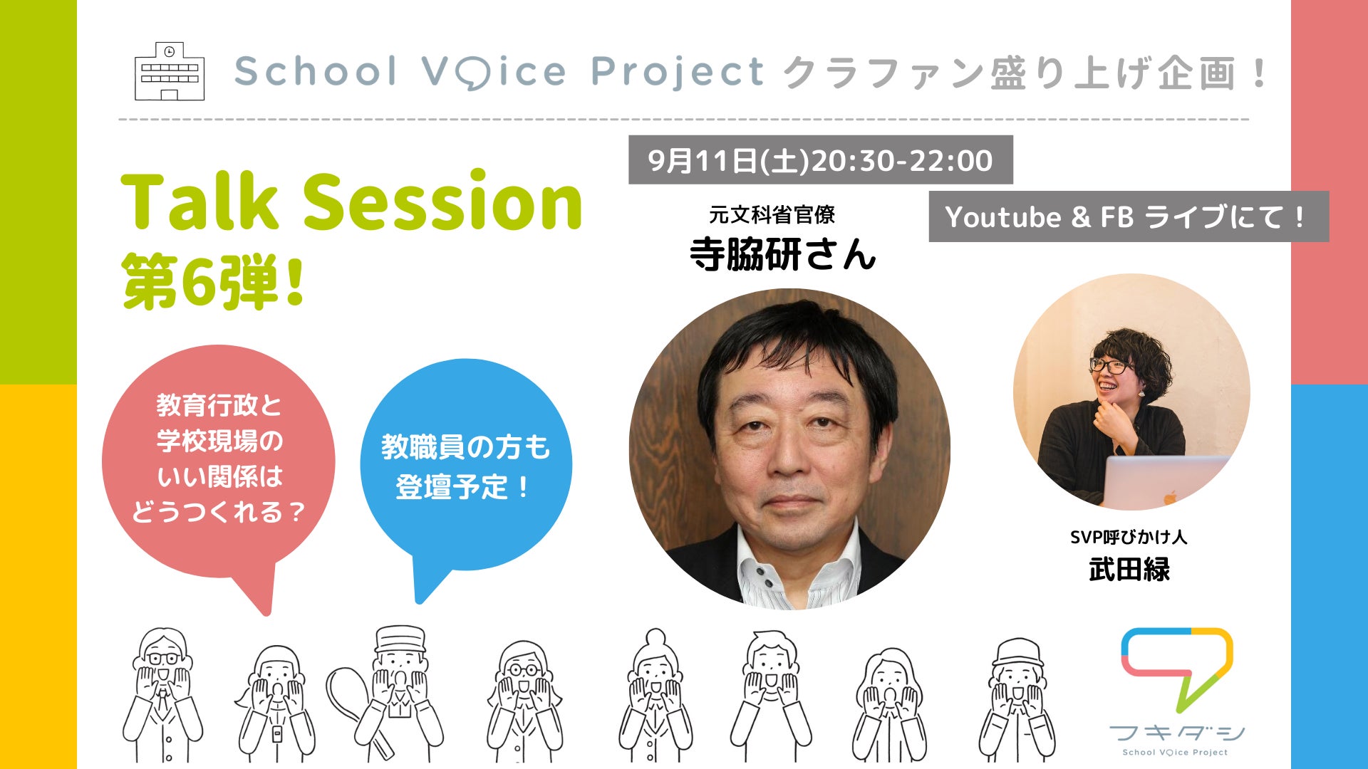 ※トークセッションには、現役教職員や元教職員の方も毎回登場してくださる予定です。