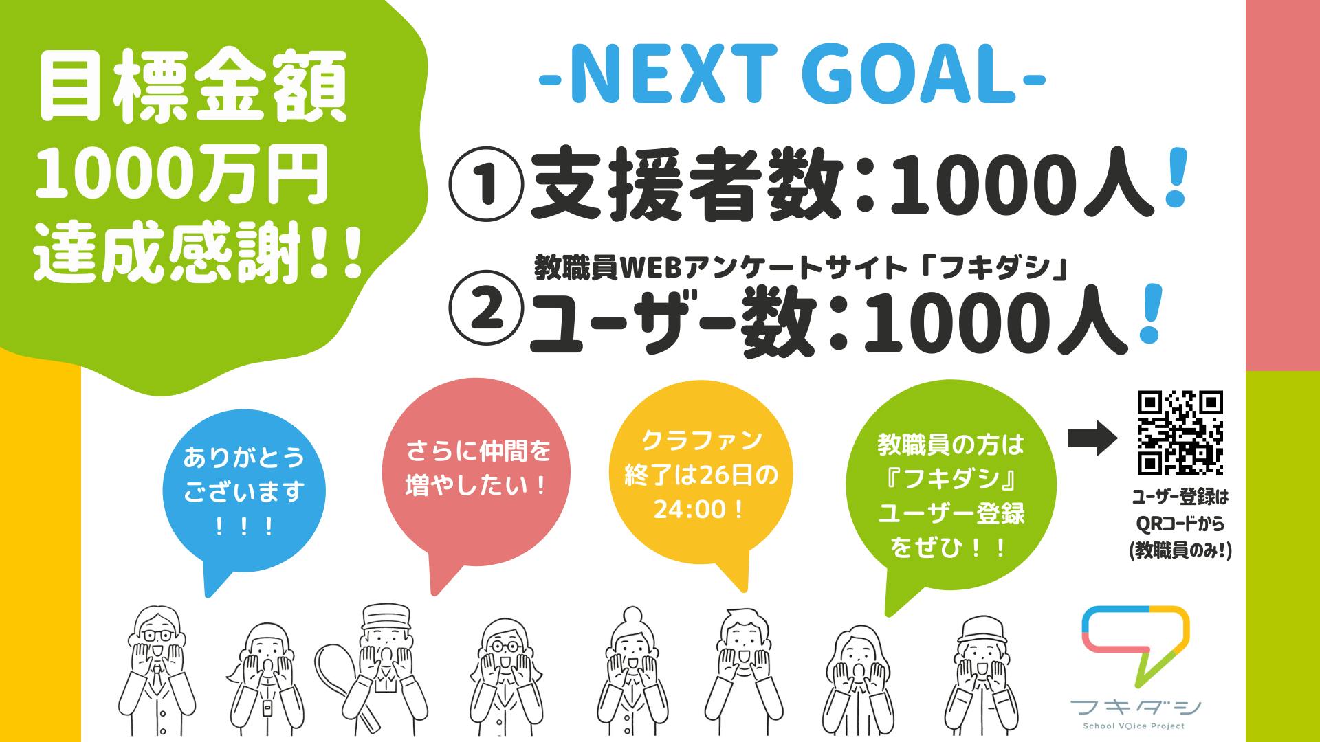 そして、教職員WEBアンケートサイト「フキダシ」のユーザー登録者数を【1000人】に。