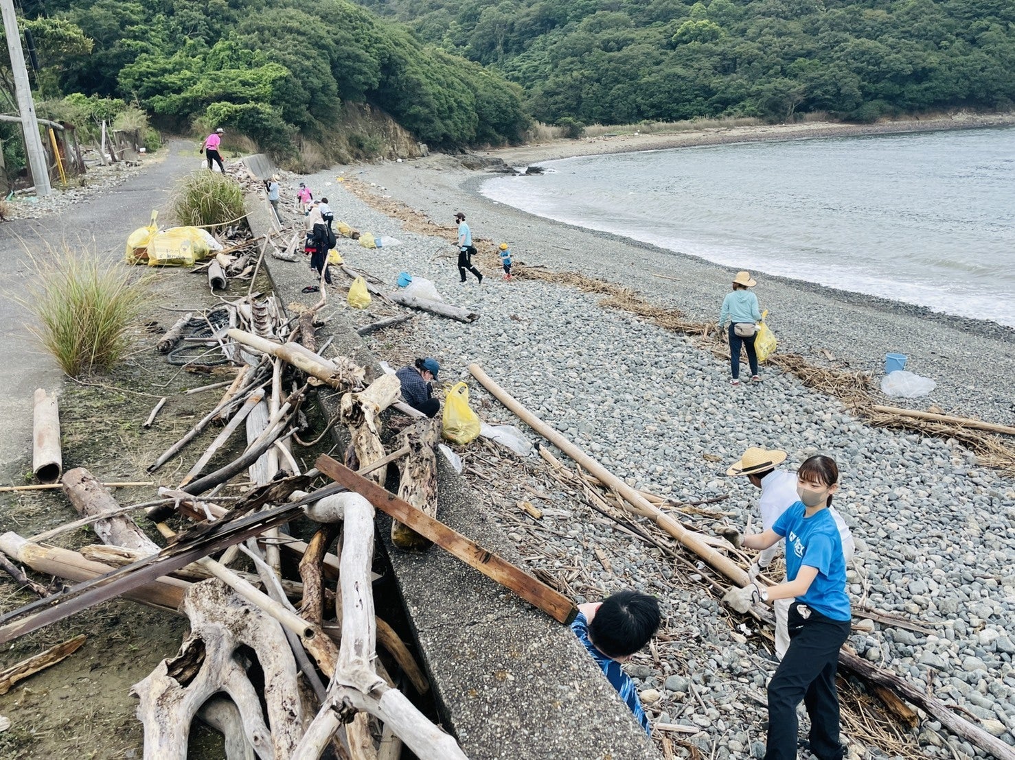 光明園と愛生園の間に位置する「碁石が浜」の清掃の様子8月中旬に続いた大雨の影響でたくさんのゴミが海岸に打ち上げられ、なかなかハードな清掃活動となりました…^^;