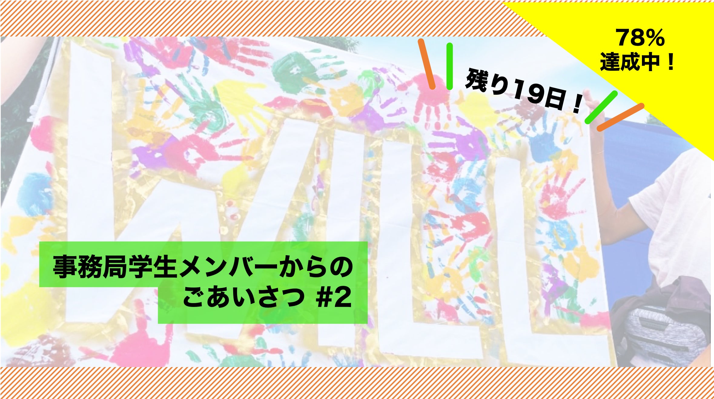 気づけば達成率も78%まで来ていて、あともう少しというところです。ご支援いただいたみなさん、広げていただいたみなさん、本当にありがとうございます!!