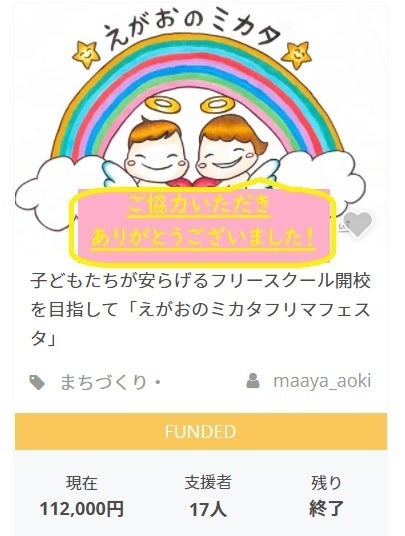 こんにちは!ご無沙汰しています(^^)えがおのミカタ青木麻綾です!新年、明けましておめでとうございます♪ 2021年に初めてキャンプファイヤでクラファンに挑戦させていただいてから早くも5年の月日が流れたんですね。大変感慨深いです♡おかげさまでえがおのミカタ活動を継続することができております! 心より感謝申し上げます。2025年も皆さんの応援サポートがあってたくさんのこどもたちにイベント・こども食堂・フリースクールなどの居場所を届けることができました☆ありがとうございます! 2026年、えがおのミカタは新たに『 ”生きる根っこ” プロジェクト』を立ち上げ準備中です‼・こどもたちの自然遊びの場の減少・耕作放棄地や放置竹林の増加といった社会課題にアプローチします!!耕作放棄地を再生し、こどもたちの遊び場を作る!そして、水道・電気に頼らないインフラも整え、災害時には安心安全の拠点へ!そんなプレーパークを作ります(^^) 本プロジェクトは「楓工務店ならスマイルリレー」プロジェクトに認定いただきました!! このプロジェクトを実行するため、現在クラファンに挑戦中です!クラファンは1月末まで。目標50万円のところ、現在7万円ほど…。 残りわずかな期間ですが、半分でも達成したいと思っています‼ぜひ応援・拡散いただけると嬉しいです。 ≪詳細はこちら≫https://congrant.com/project/egao-earth-fam/19645 今年もえがおのミカタ、居場所づくりに励んでまいります。どうぞ本年もよろしくお願いいたします!!
