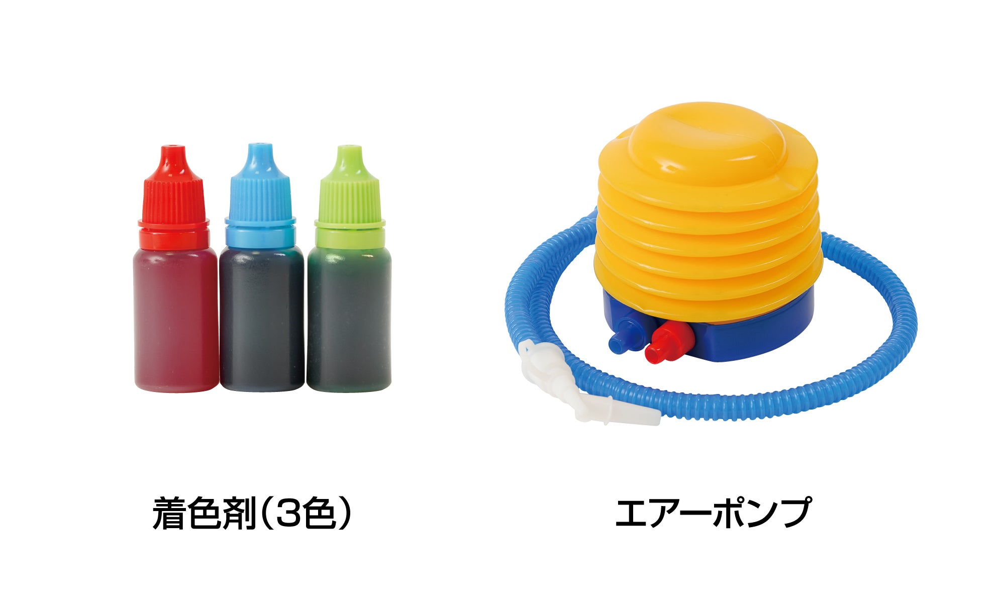 3色の着色剤とエアーポンプ