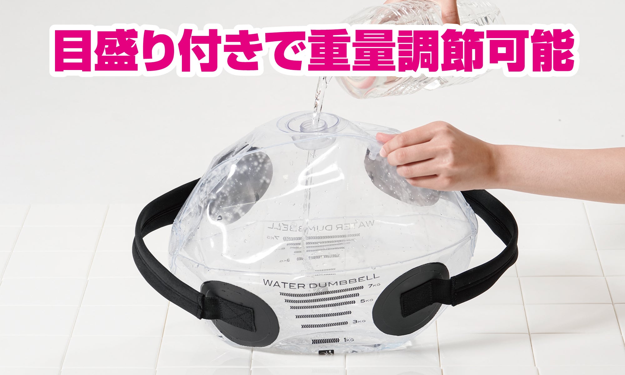 1㎏〜7㎏までの目盛り付き!トレーニングメニューや自分のレベルにあわせて、水の調節が出来ます。