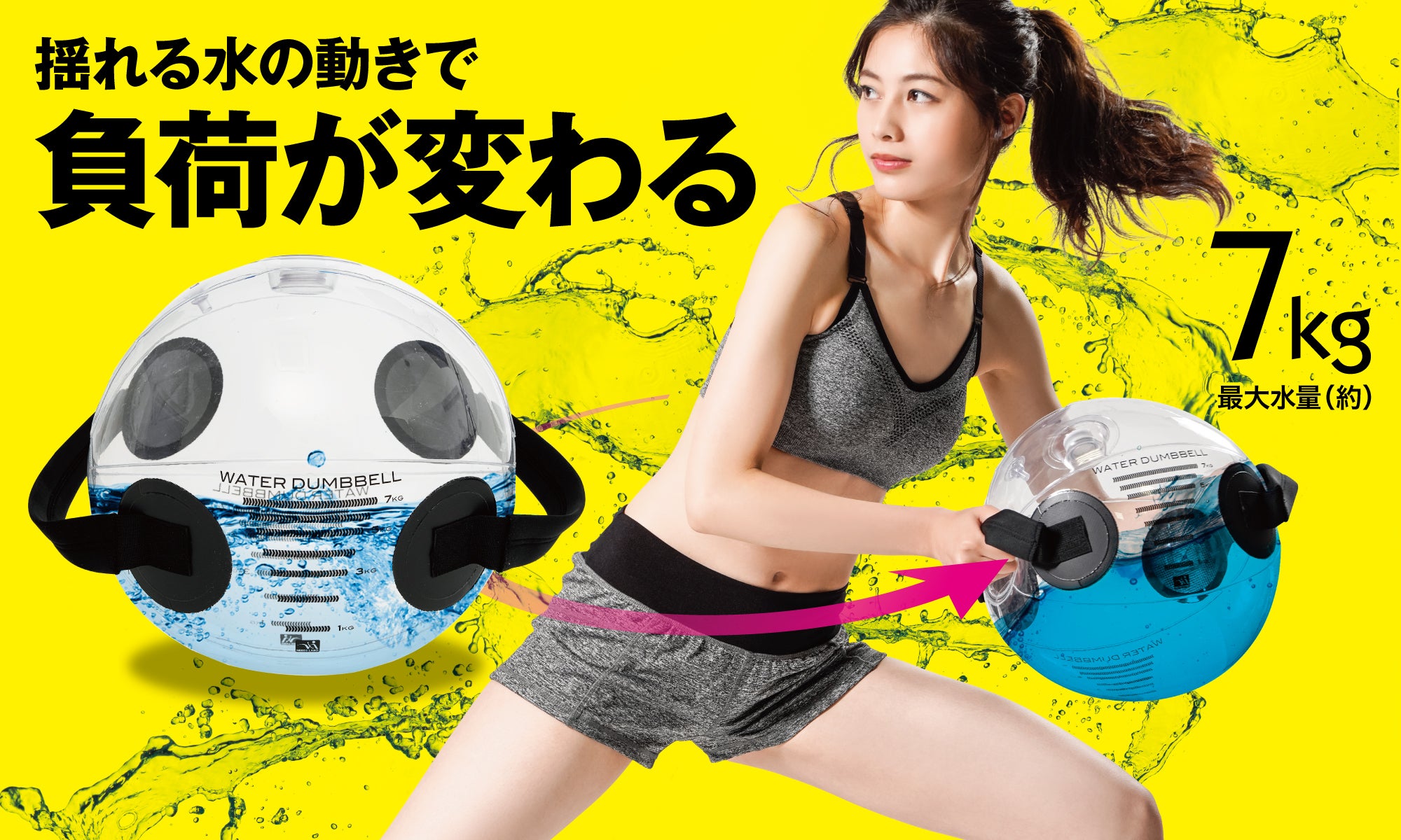 ●本体に入れる水は、必ず水道水を使用してください。●雑菌の繁殖の原因となりますので、浄水器の水などは使用しないでください。●本品は1〜7kg対応です。●7kg以上水を入れてのご使用は絶対におやめください。●7kg以上水を入れて使用した場合、持ち手や本体が破損し、水漏れの原因となるおそれがあります。●目盛りの位置はあくまで目安です。空気の入れ具合によって水の高さの位置が変化します。●水注入口を開けると空気が抜けますので、十分注意してください。水がこぼれる場合があります。●首や腰にヘルニアなど疾患のある方、身体の不自由な方は必ず医師にご相談の上使用してください。●初心者・高齢者・お子様がご使用する際は補助の出来る方と一緒にご使用ください。●ケガの予防のために、本品をご使用する前に準備運動を行うことをおすすめします。●指輪などの装飾品をつけたままご使用しないでください。破損の原因となります。●分解、改造、修理はしないでください。●変形や破損の原因になりますので、周囲に凸凹したもの、尖った物、ガラスなど割れやすいものがないことを確認してからご使用ください。また、重い物を上に乗せたり、立ったり、座ったり、投げて落としたりしないでください。●本品を絶対に引きずらないでください。●本品は屋内専用です。屋外での保管・使用はしないでください。●階段付近、ベランダでは使用しないでください。●すべりやすい場所、不安定な場所では使用しないでください。●ハンドクリームを塗った状態または手袋をはめた状態で使用しないでください。●すべりにくい室内シューズを履くか、素足で使用してください。●本品で運動する場合は、運動に十分なスペースを確保し、最低2m四方の周囲に硬いもの、鋭利なもの、家具、ストーブなど障害物がない場所で使用してください。●過度な連続使用はしないでください。●本品は一般家庭用です。本格的なトレーニングにはご使用しないでください。●運動中は息を止めず、自然な呼吸を心がけてください。●本品ご使用中に動悸や、めまいなど、体に異常を感じた場合はすぐにご使用を中止し、医師などにご相談ください。●水・付属の着色剤以外のものは入れないでください。●空気漏れ・水漏れ・キズ・亀裂があった場合はご使用をおやめください。●水を使用しますので、流し台・お風呂場・ベランダなど水がこぼれても問題ない場所で水を入れてください。●色の付いた水が服や家財に付いた場合は早めに洗濯してください。素材によっては完全に色が落ちない場合がありますのでご注意ください。●使用した水・色の付いた水は絶対に飲まないでください。●開封後は、材質特有のニオイがする場合がありますが、使用していくうちに消えていきます。●材質の特性上、膨らませてもシワが残る場合がありますが、使用上問題ありません。●本体は材質の特性上、同じ場所に置いたままにすると接地面が引っ付いたり色移りする場合がありますのでご注意ください。●高温の場所、火気の近くではご使用をおやめください。本品が変形・破損するおそれがあります。●本品が汚れた場合は硬く絞った布などで汚れを拭き取ってください。また、シンナー・ベンジンなどはご使用しないでください。●本来の目的以外でのご使用はおやめください。●印刷の都合上、実際の商品と多少色が異なる場合があります。