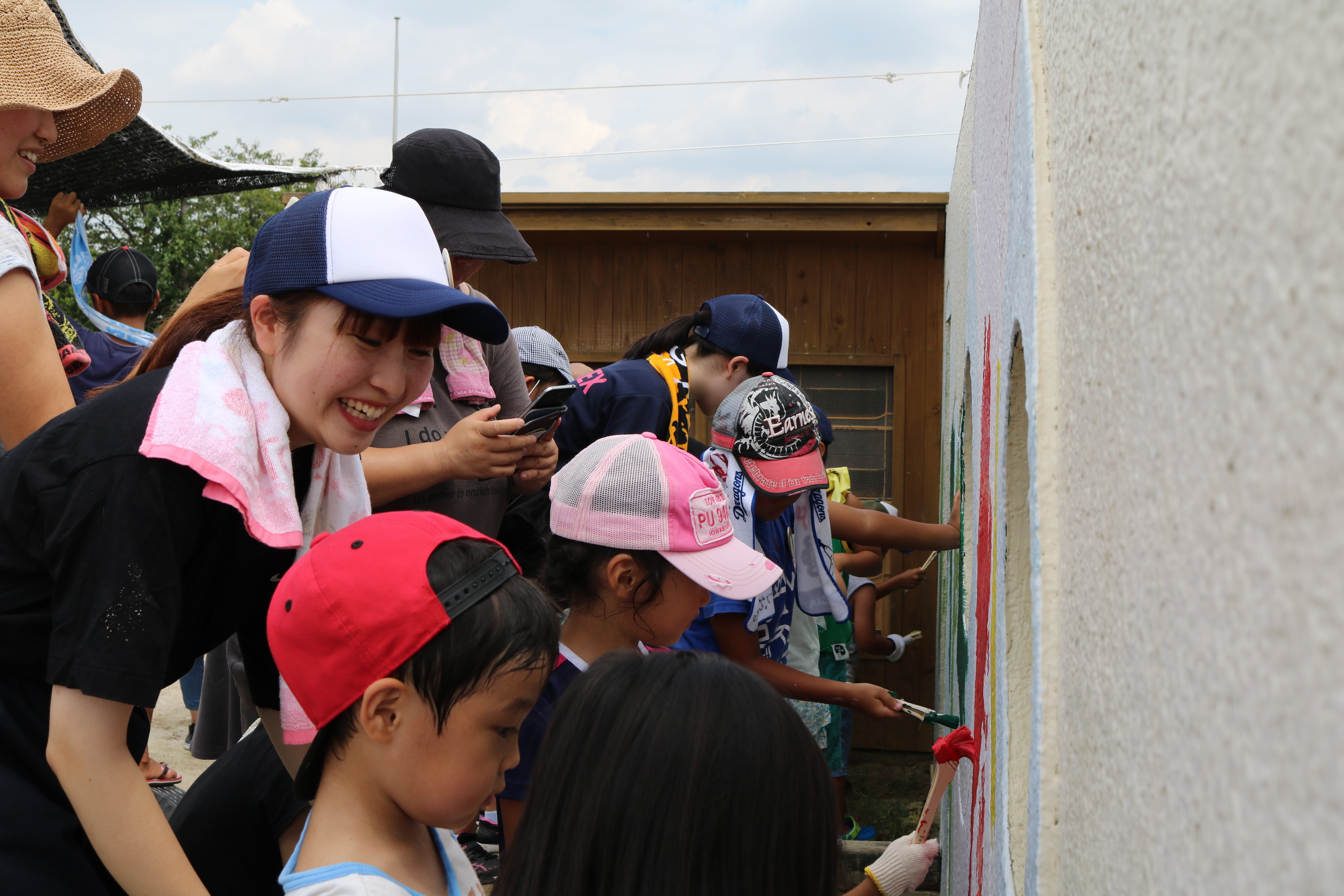 幼稚園や小学校、高校の壁などの塗り替えを行った事例では、実際にそこへ通う園児や学生、保護者やPTA、職員の方々と共に実施してまいりました。もちろん主催サイドとしても大学生に参加して頂き、共に運営に参加してまいりました。