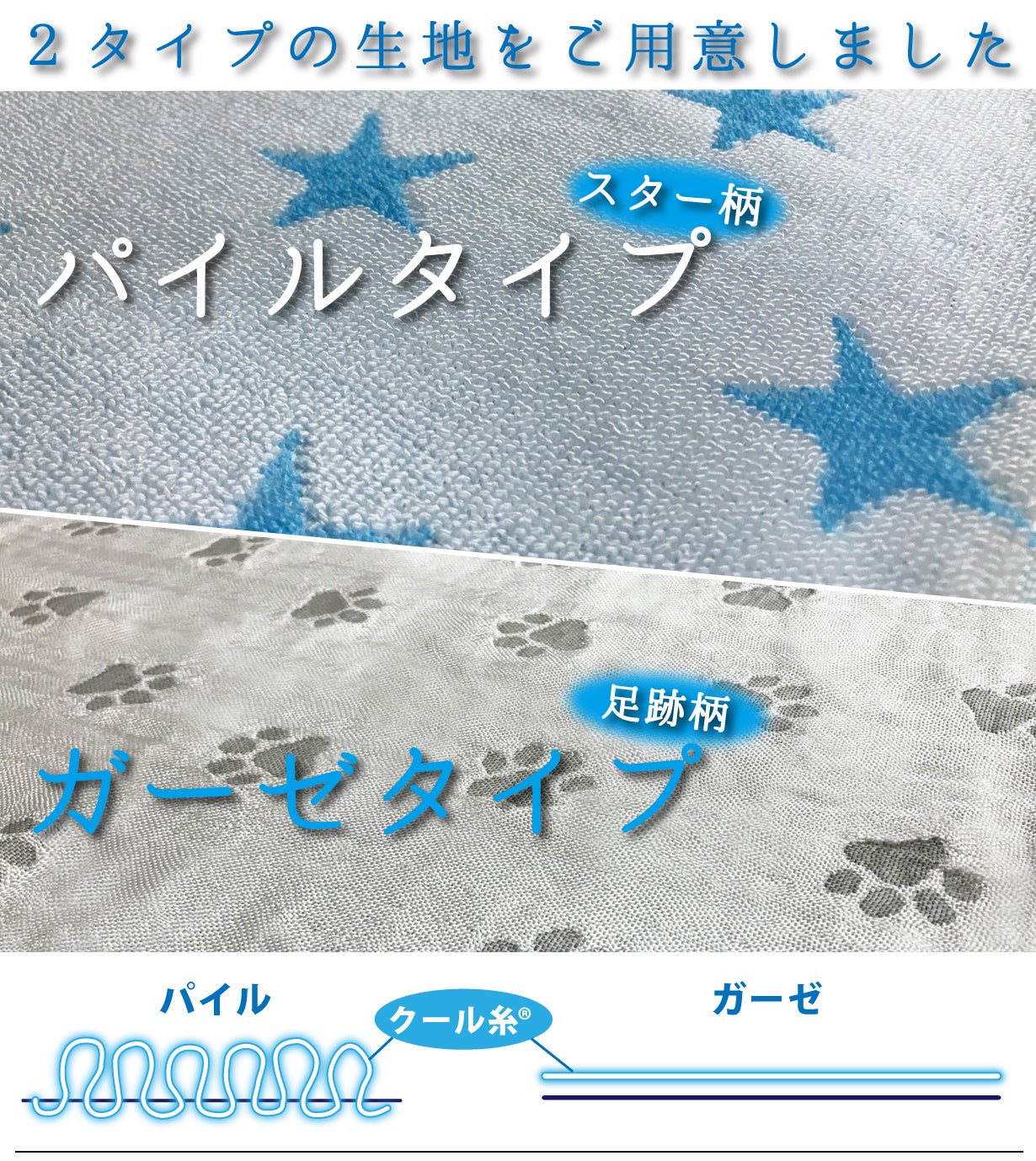 パイルタイプと2重ガーゼタイプの2種類をご用意しました。